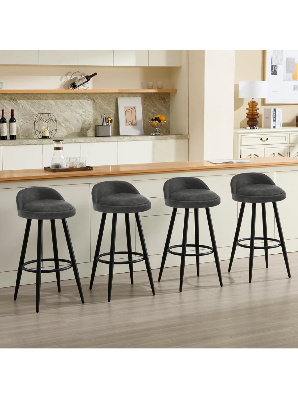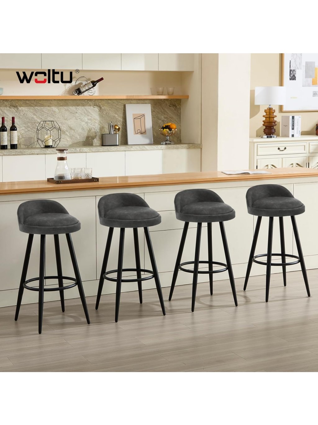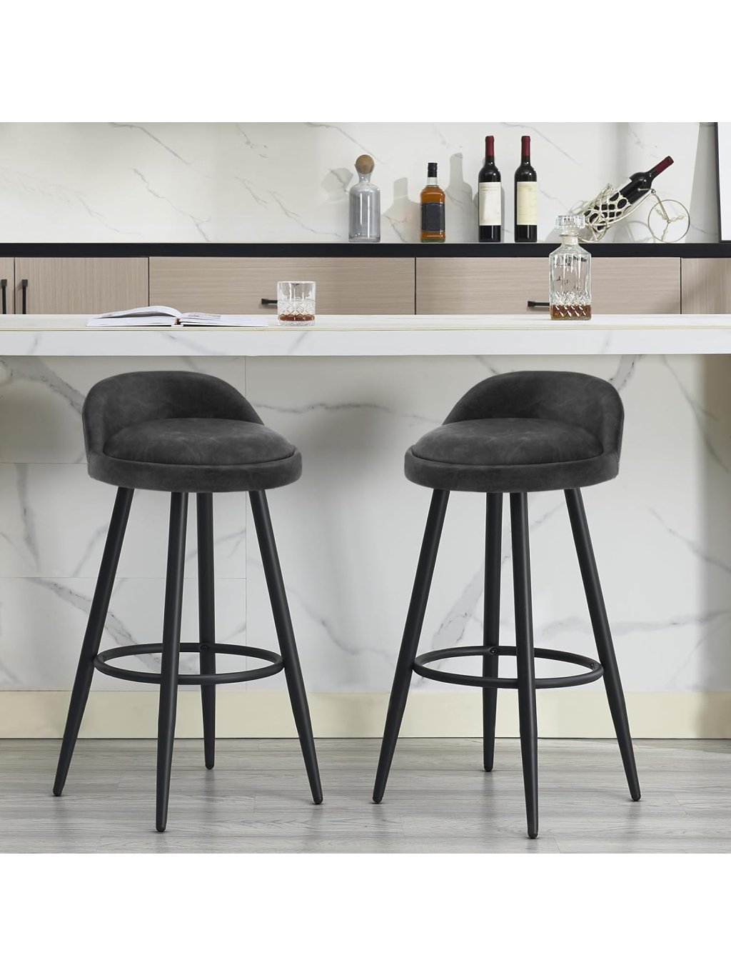 Tato sada dvou luxusních barových židlí kombinuje moderní estetiku s maximálním pohodlím. Díky elegantnímu sametovému polstrování v antracitovém odstínu a dekorativnímu kosočtvercovému prošívání se tyto židle stanou stylovým doplňkem vaší kuchyně, domácího baru nebo moderního bistra.