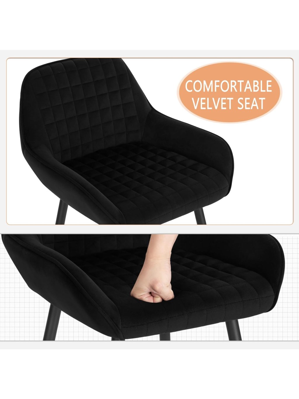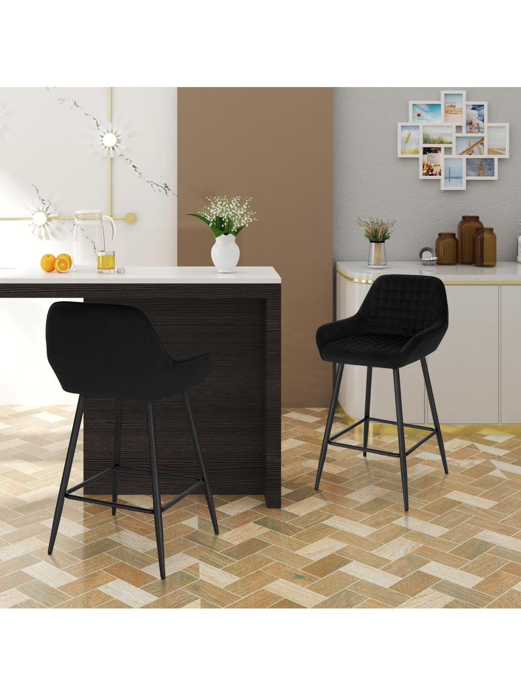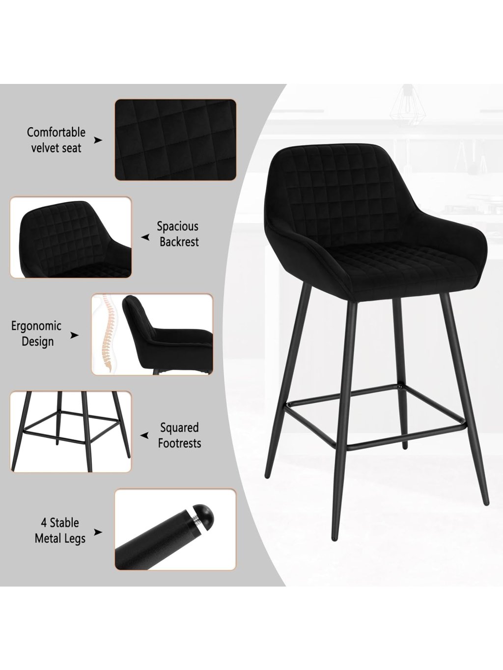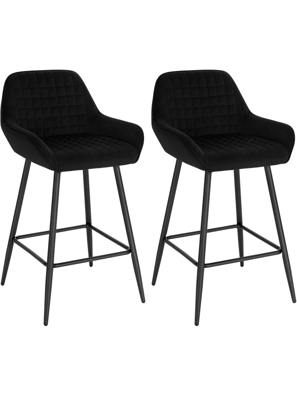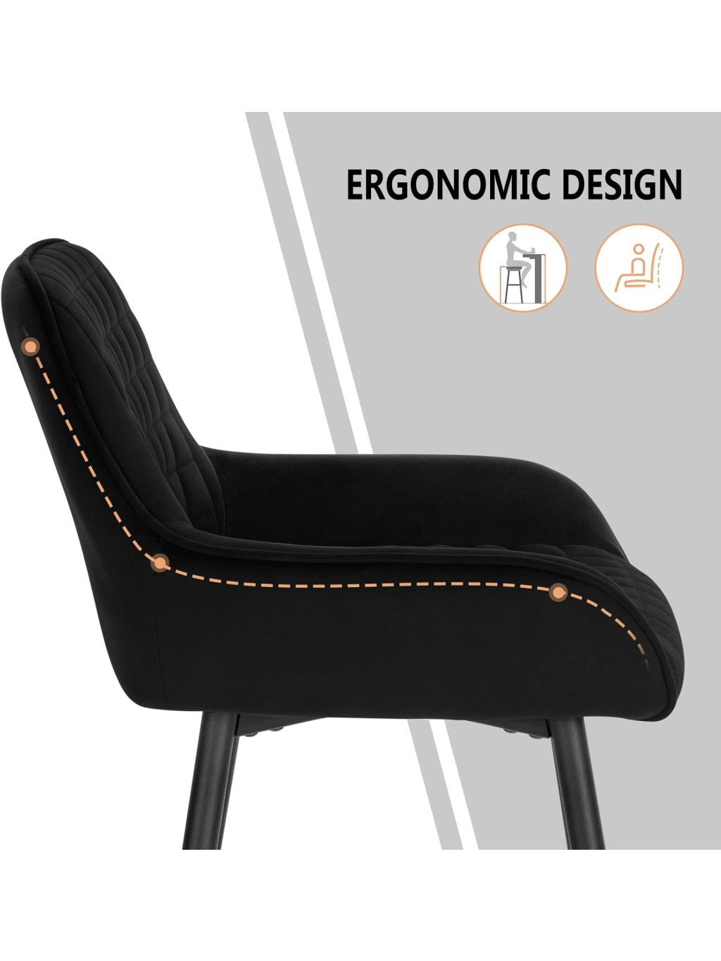Sada 2 barových židlí s područkami a opěrkou zad, sametové, černé