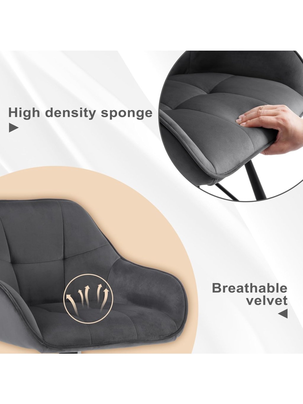 Výjimečný komfort a detaily Židle jsou čalouněny jemným sametem, který je příjemný na dotek a odolný proti opotřebení. Výrazné čtvercové prošívání dodává židlím moderní vzhled a zároveň zvyšuje odolnost polstrování. Sedák je vyplněn měkkou pěnou, která zajišťuje pohodlné sezení i po delší dobu.