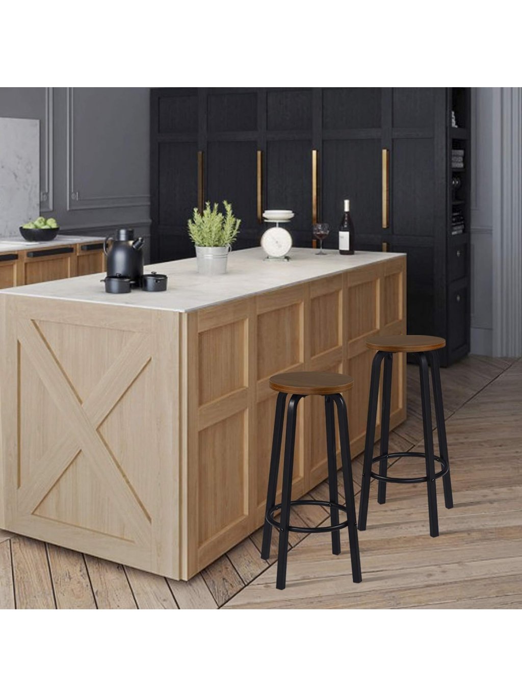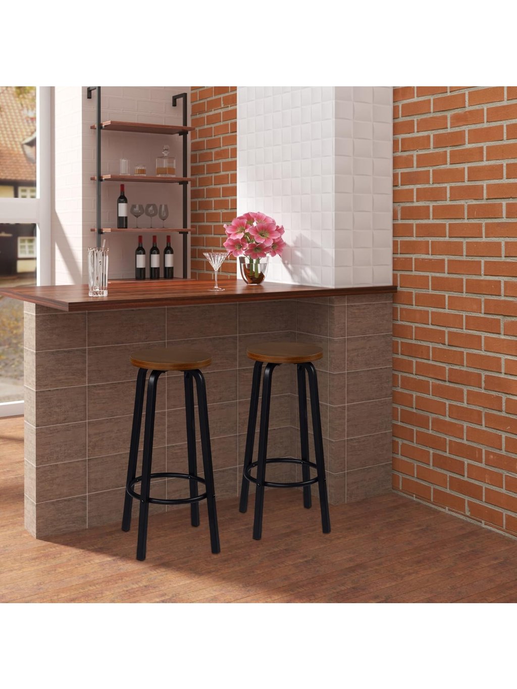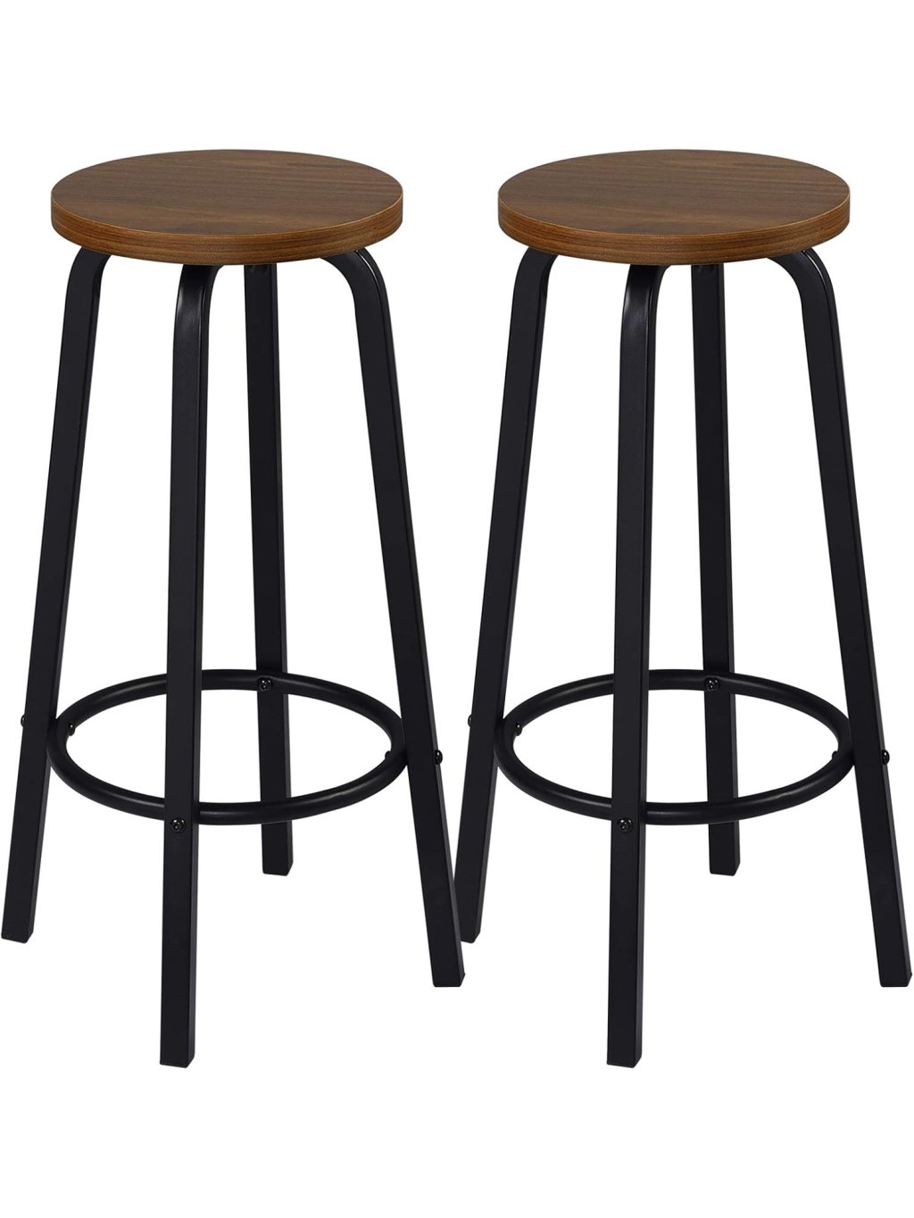 Sada 2 barových židlí WOLTU BH237 v industriálním stylu – tmavý buk, kovové nohy