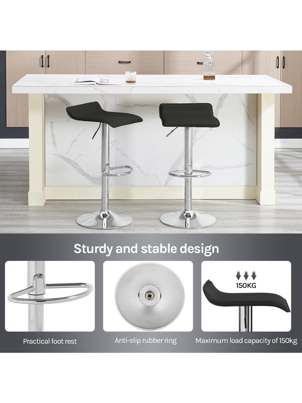 Moderní barové židle WOLTU kombinují elegantní vzhled, pohodlí a funkčnost. Díky otočnému mechanismu a výškovému nastavení jsou ideální do kuchyně, jídelny, obýváku nebo domácího baru.