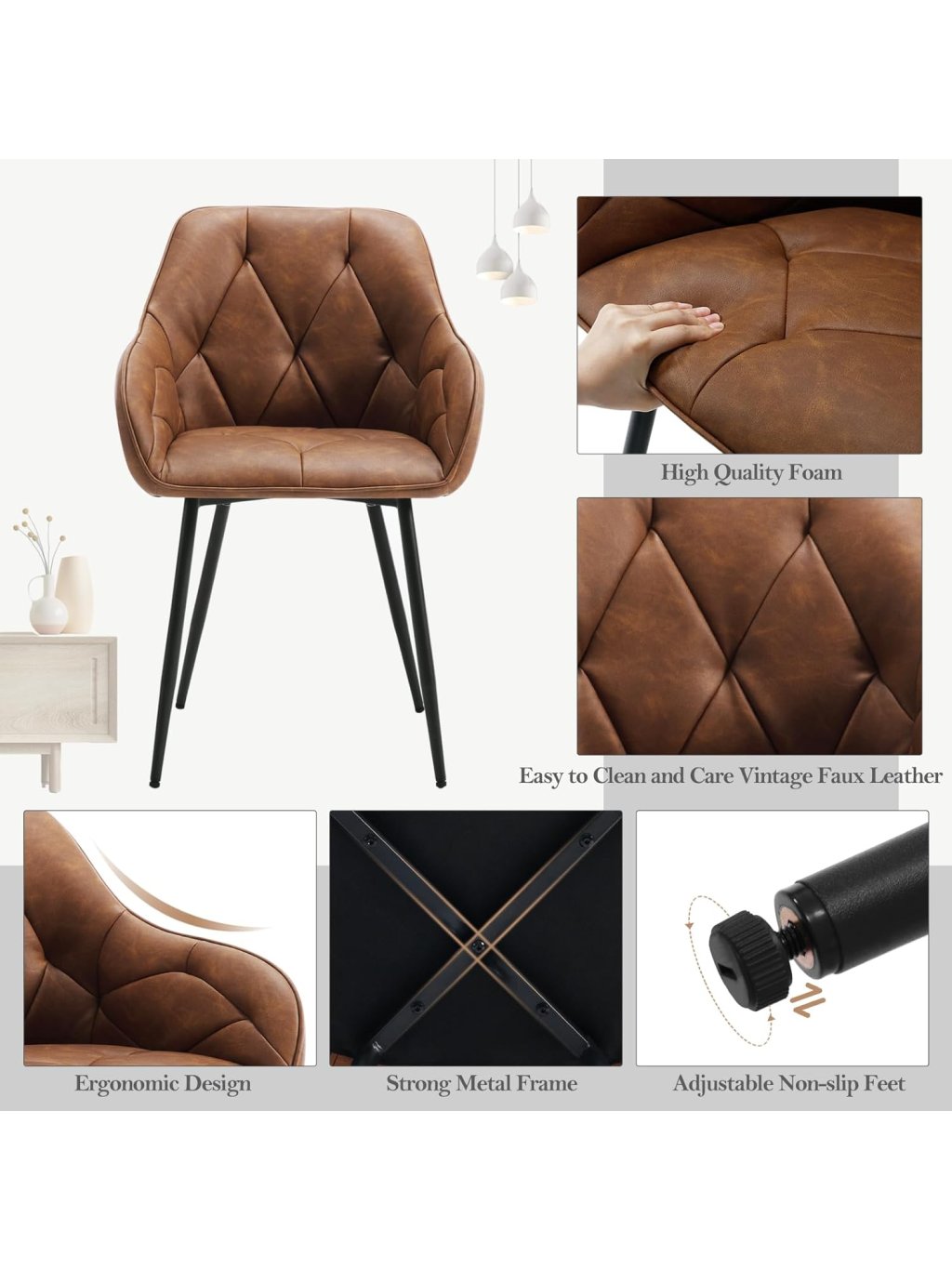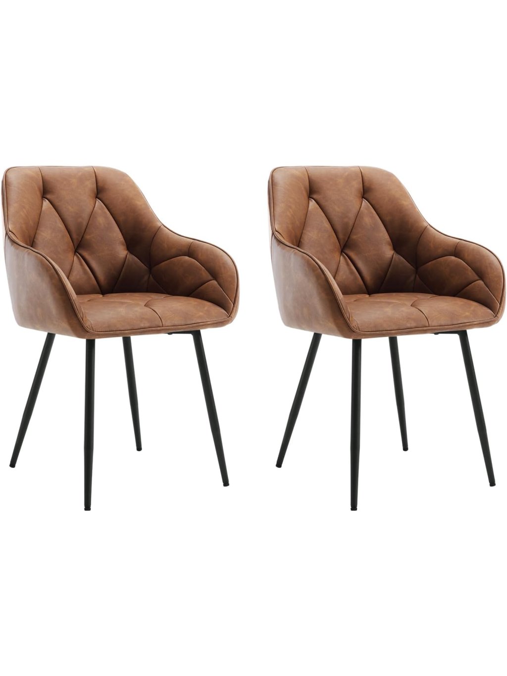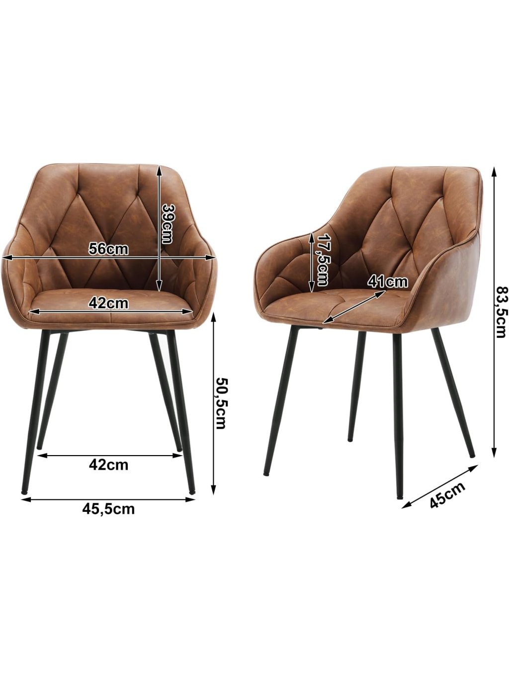 Tato sada dvou čalouněných jídelních židlí nabízí vysoký komfort sezení, pevnou konstrukci a elegantní vzhled vhodný do moderních i klasických interiérů. Díky kvalitnímu čalounění z umělé kůže a výplni z husté pěny poskytují židle pohodlí při každodenním stolování, práci u stolu nebo delším sezení.