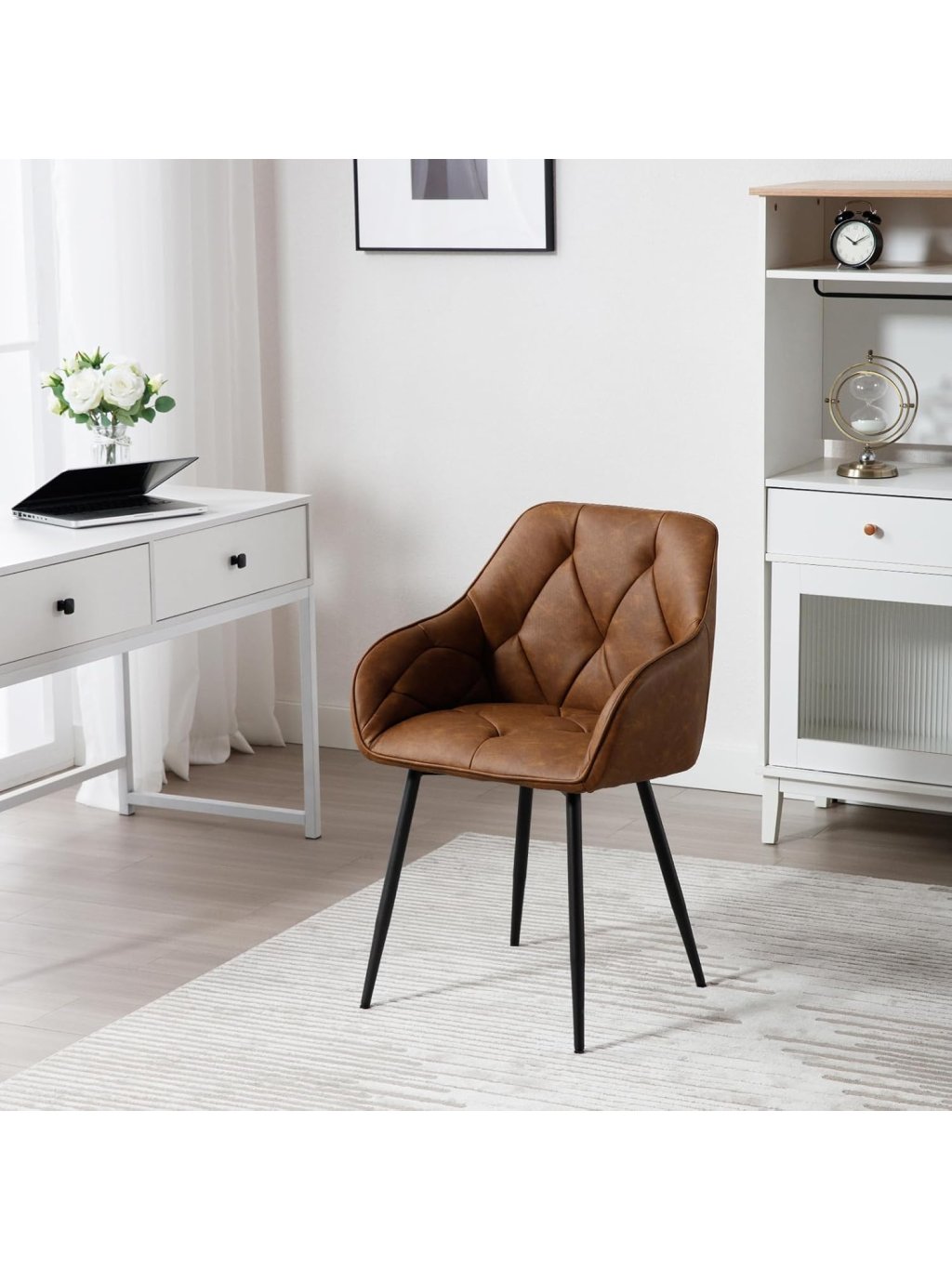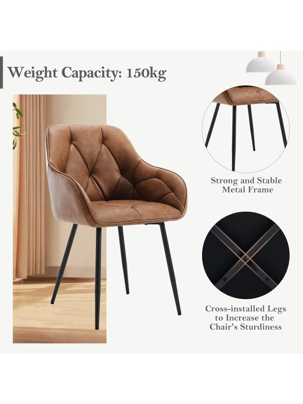 Sada 2 čalouněných jídelních židlí s područkami, kovové nohy, hnědá koženka