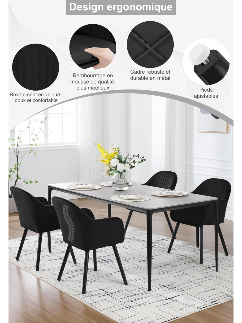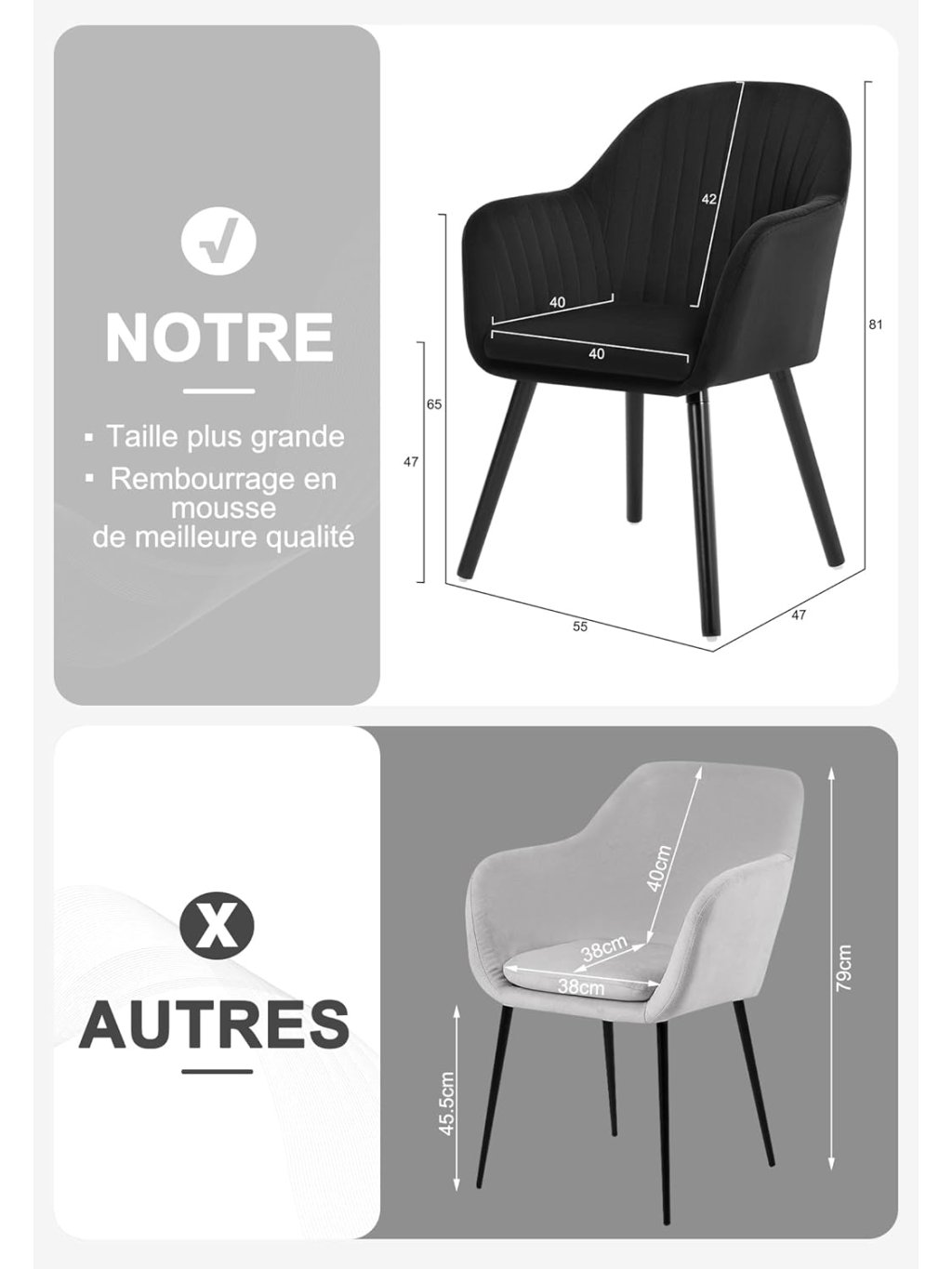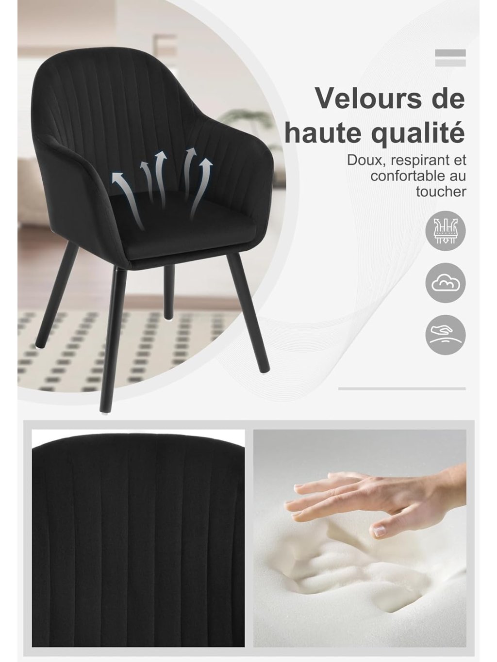 Tato sada dvou čalouněných jídelních židlí nabízí kombinaci pohodlí, pevné konstrukce a elegantního vzhledu. Sametový potah je odolný proti opotřebení a spolu s výplní z vysoce pružné pěny zajišťuje komfortní sezení i při delším používání.