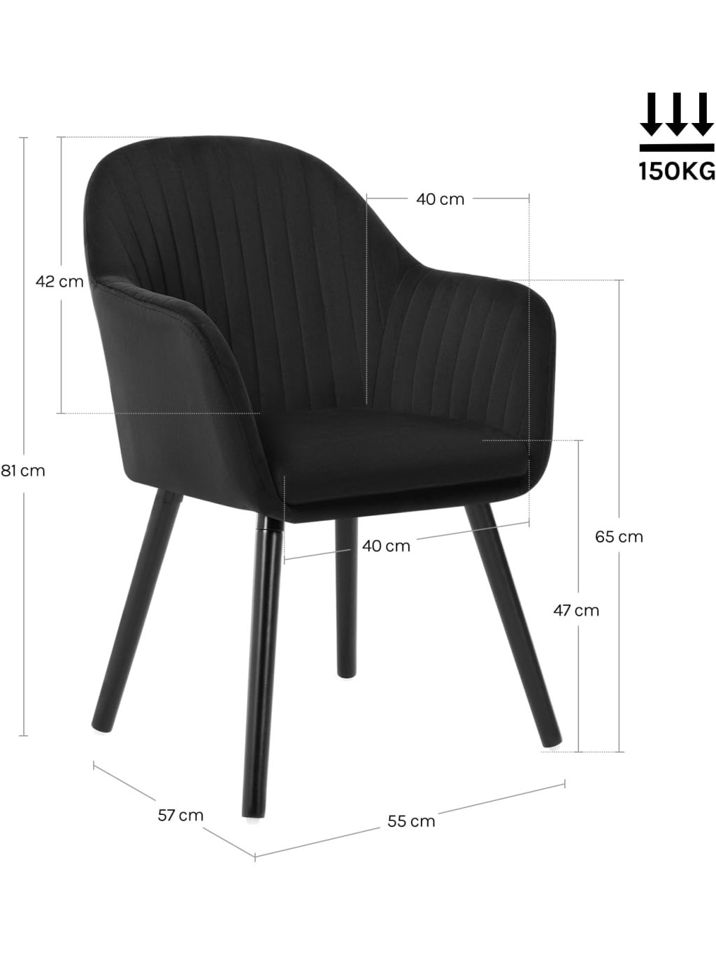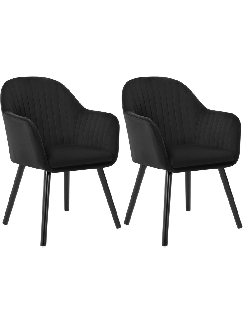 Sada 2 čalouněných jídelních židlí s područkami, sametové, černé