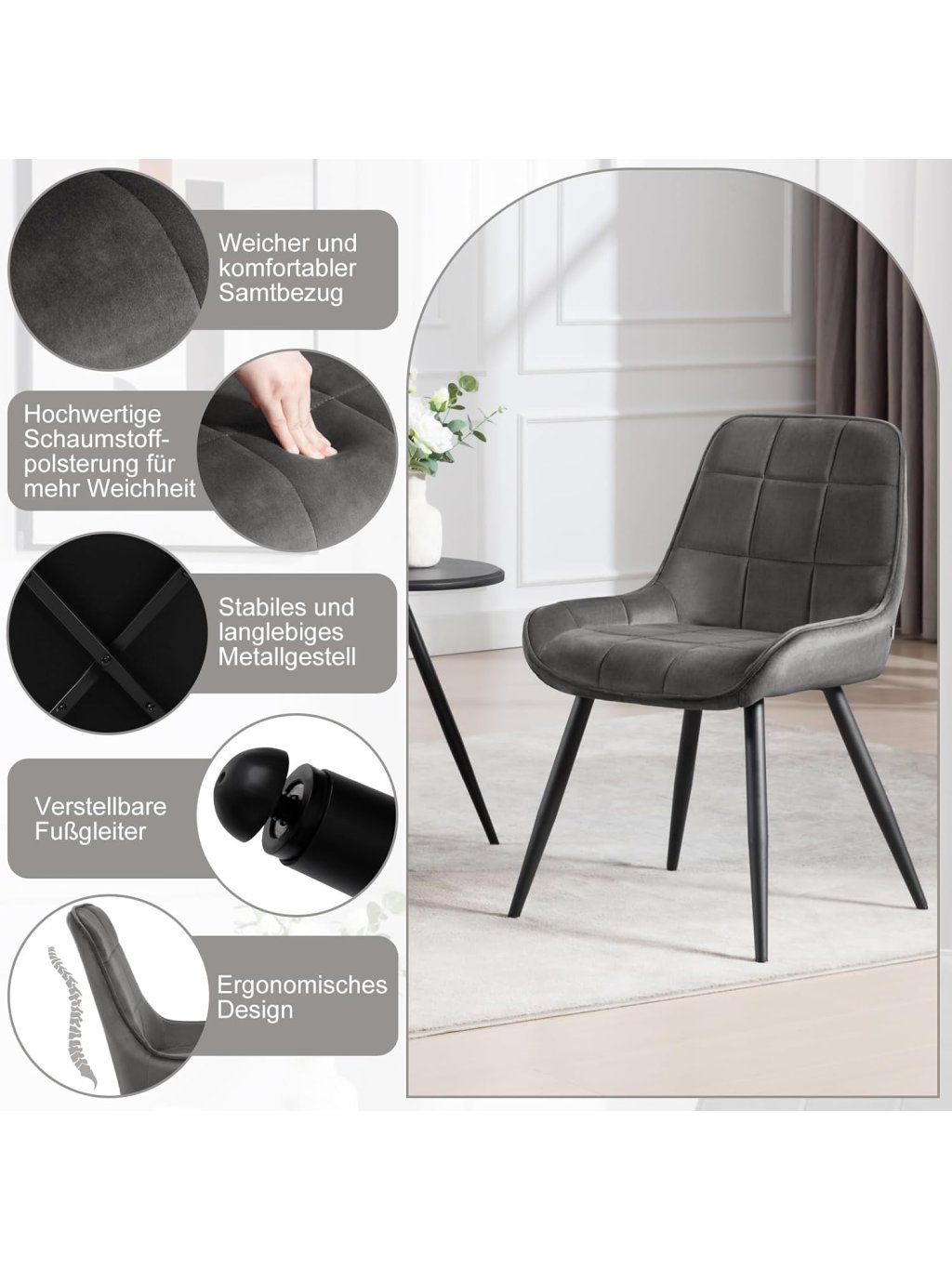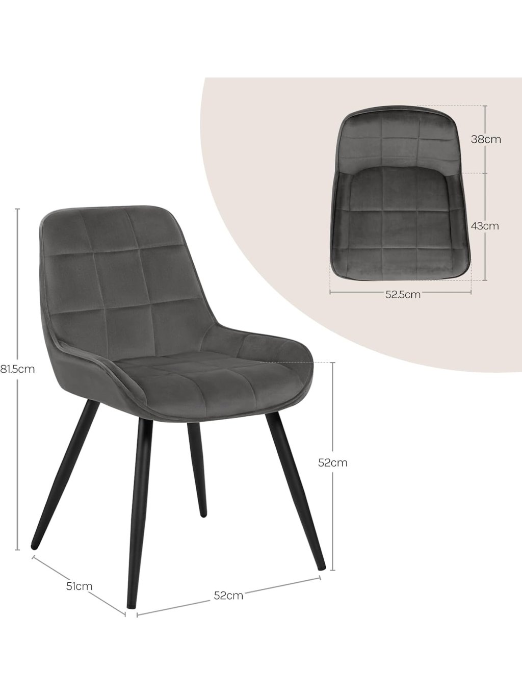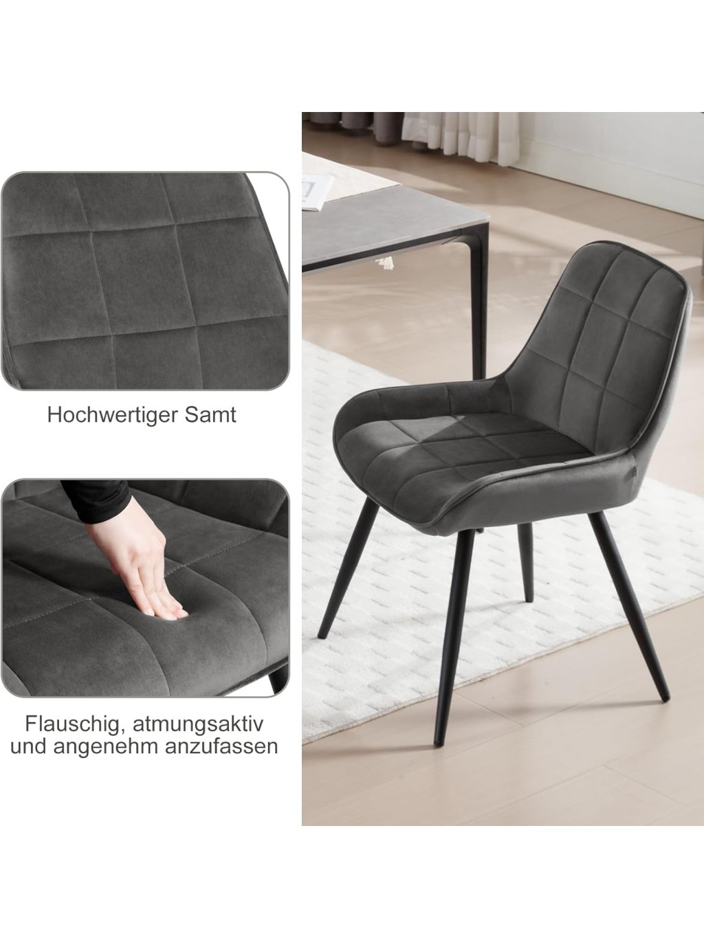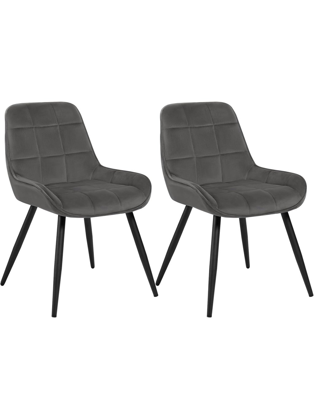 Sada 2 čalouněných jídelních židlí z sametu s ergonomickou opěrkou, tmavě šedá