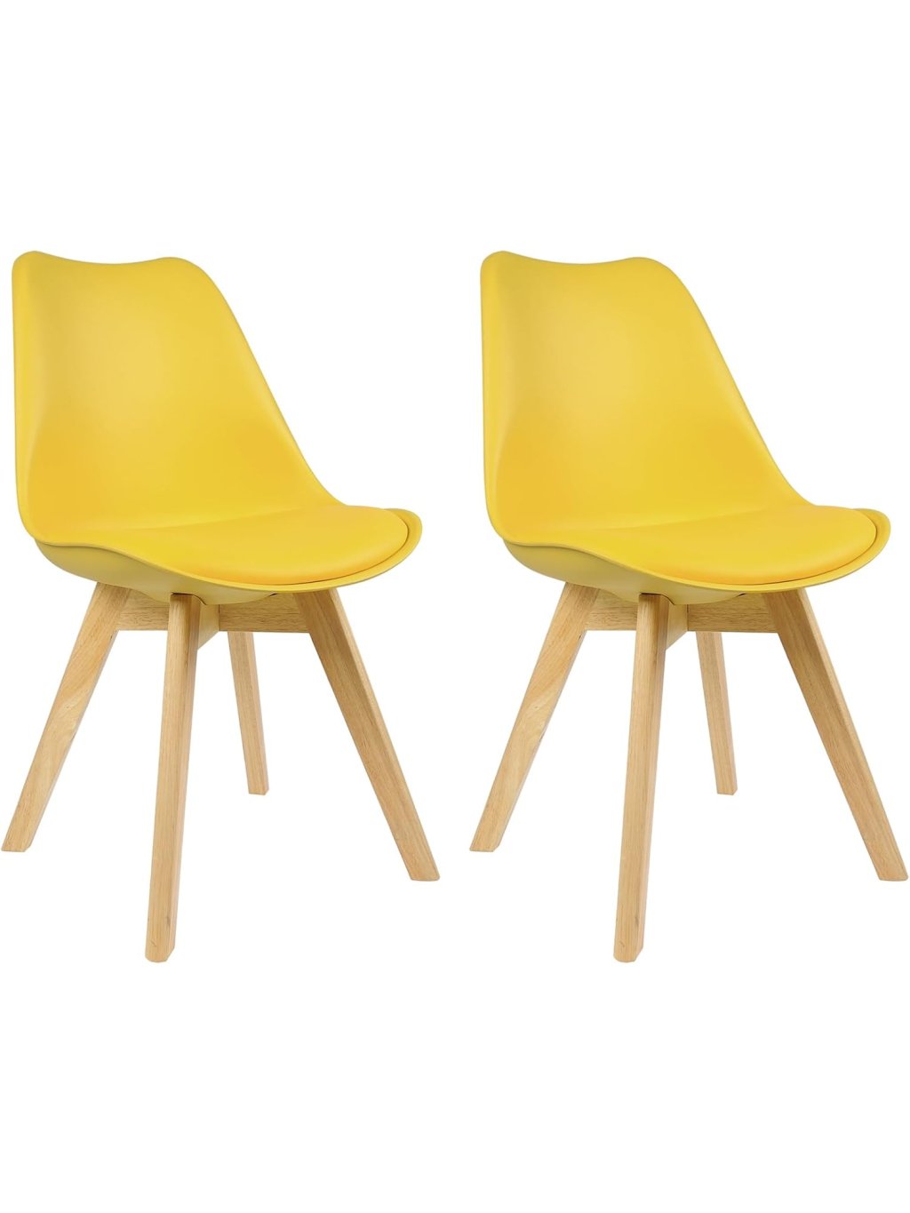 Sada 2 jídelních židlí WOLTU BH29 – plastové skořepinové židle s dřevěnými nohami a čalouněným sedákem