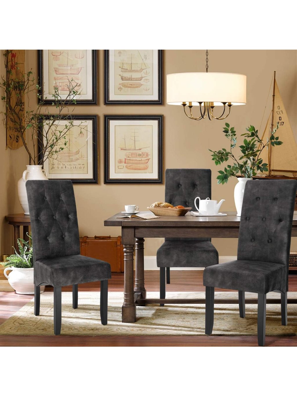 Robustní konstrukce z masivního dřeva: Tyto jídelní židle WOLTU bez područek mají rám z kaučukového dřeva, nohy jsou opatřeny černým lakem, který zajišťuje eleganci, ochranu proti korozi i proti škůdcům. Nosnost každé židle je až 150 kg.