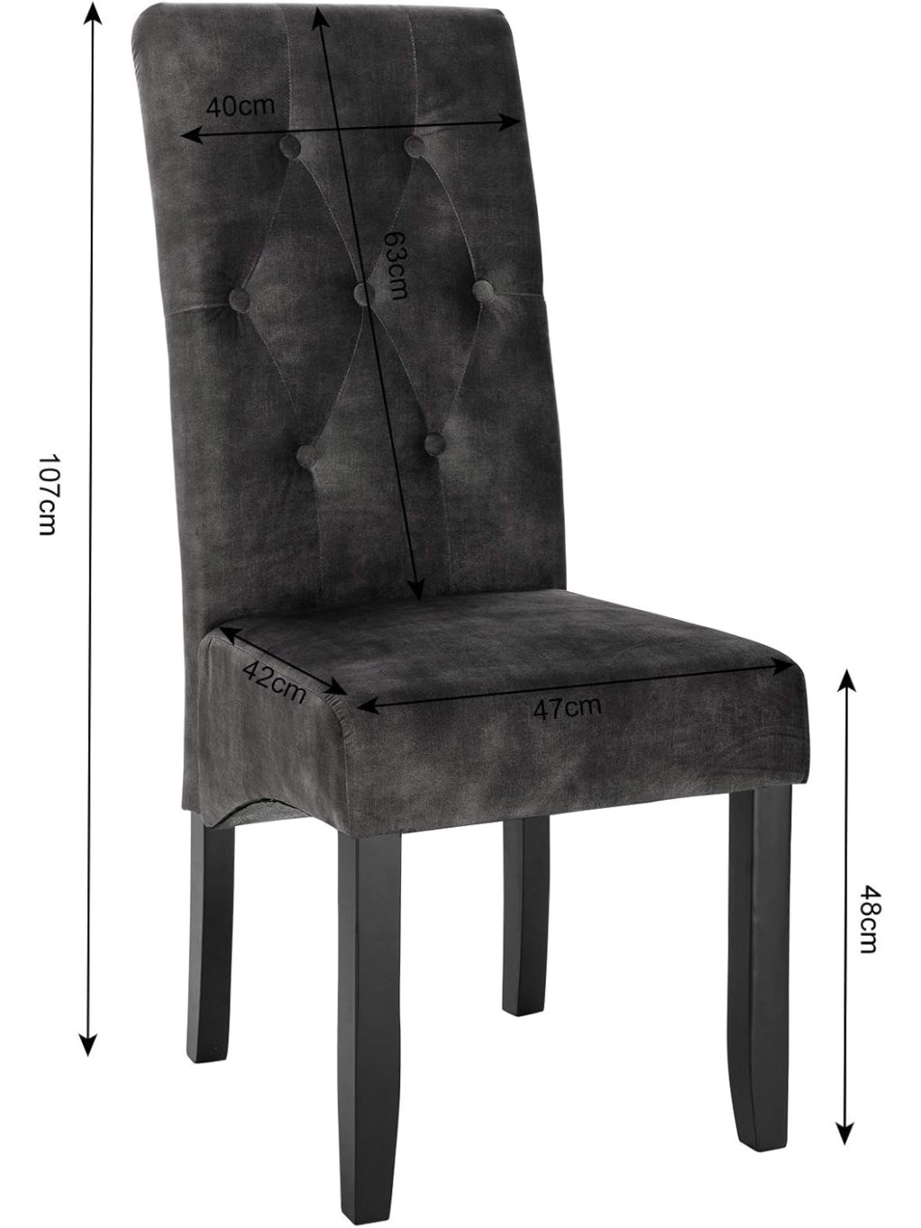 Sada 2 jídelních židlí, samet, masiv, tmavě šedá