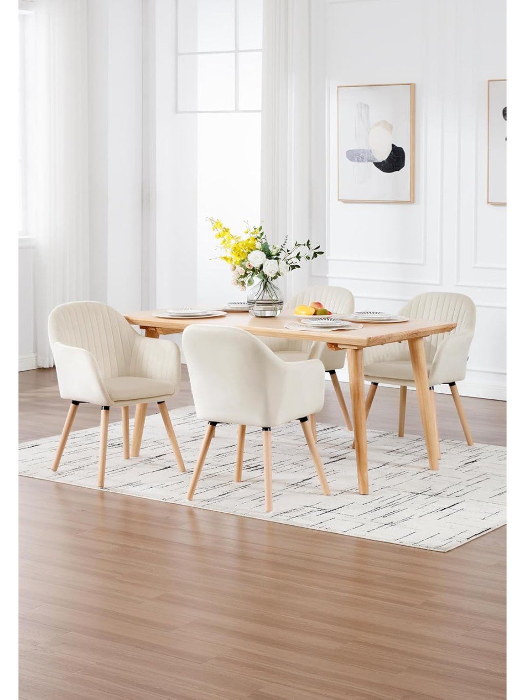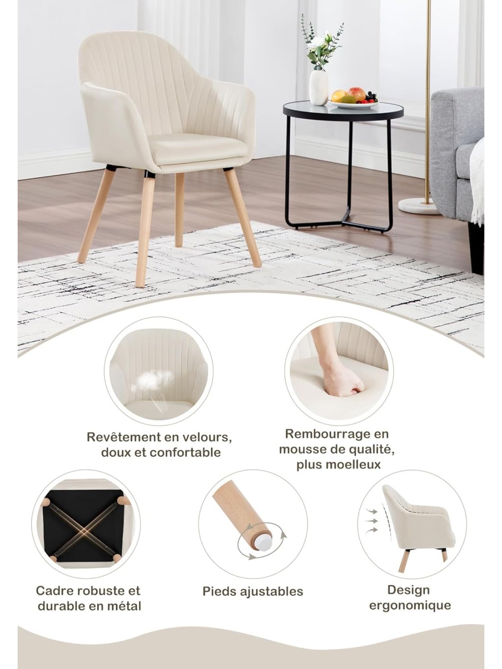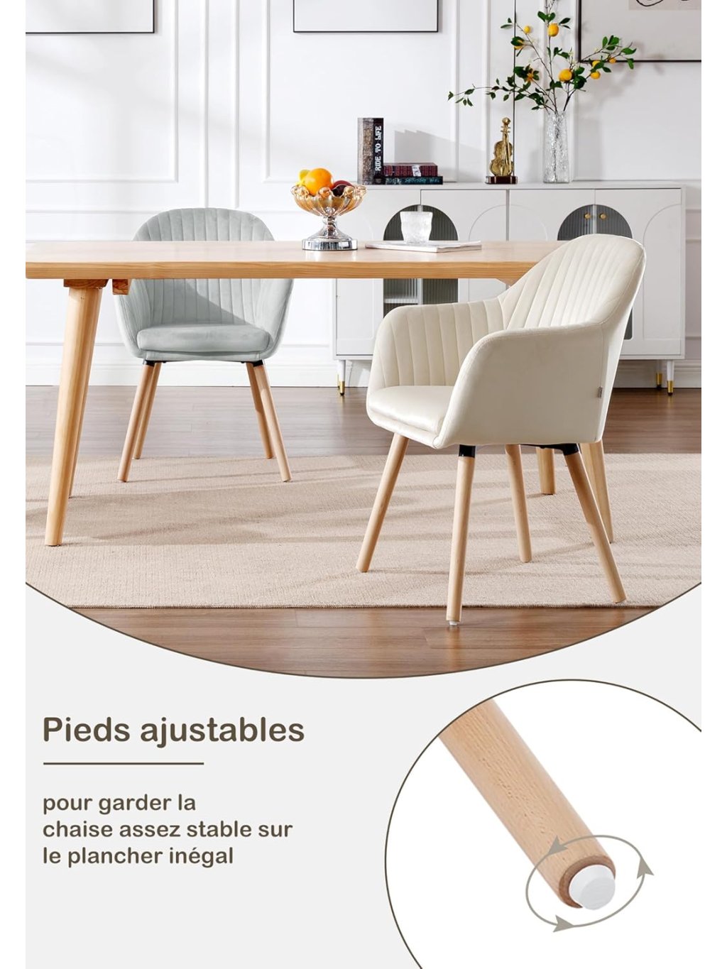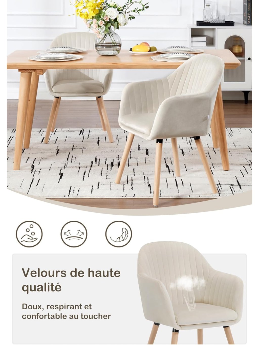 Tyto dvě moderní židle v krémové barvě kombinují skandinávský design s ergonomií a odolnou konstrukcí. Ideální pro jídelnu, obývák, pracovnu i kavárnu.