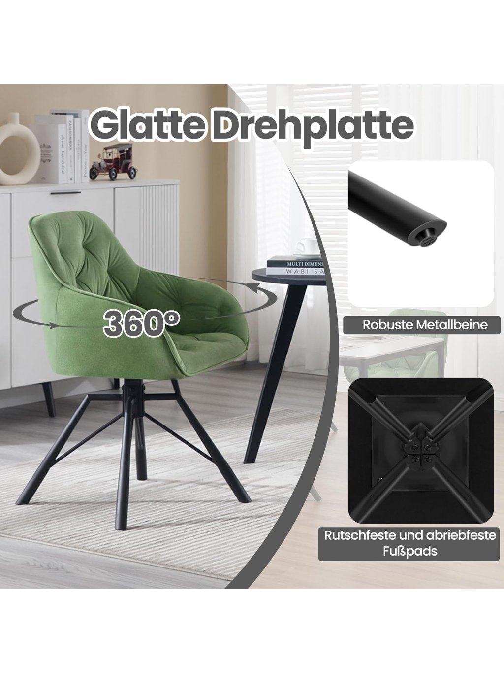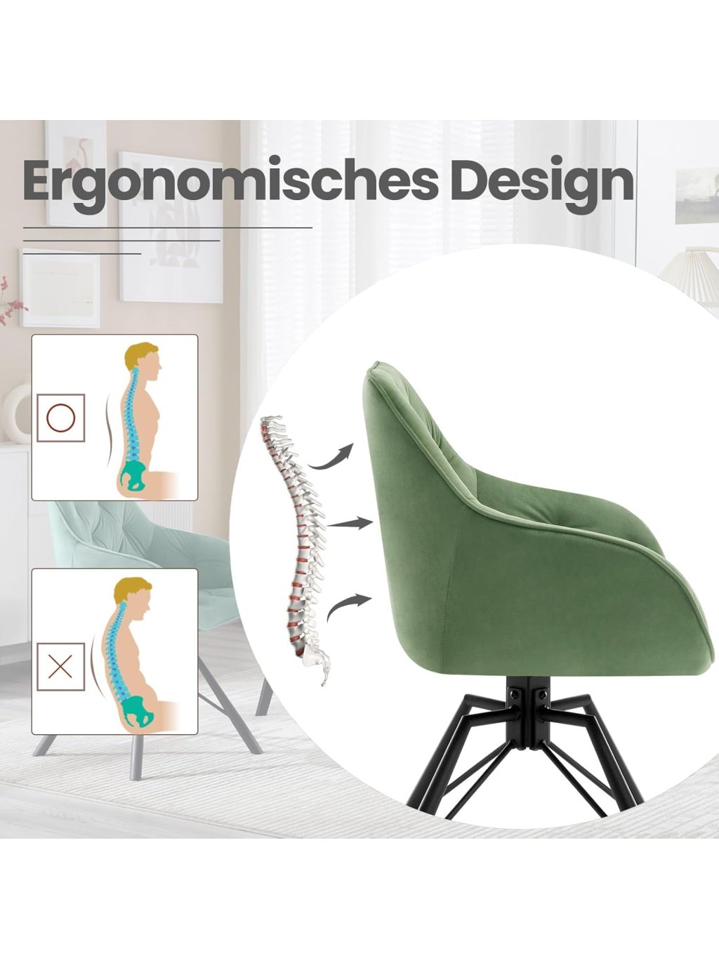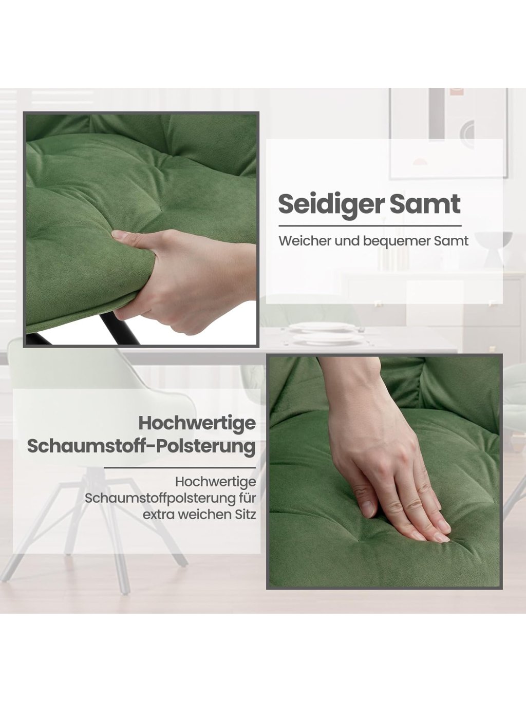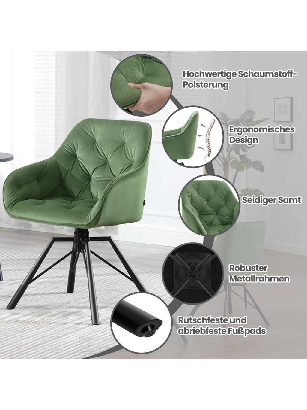 Elegantní otočné křeslo WOLTU kombinuje moderní design, vysoký komfort sezení a kvalitní zpracování. Sada dvou kusů je ideální do jídelny, obývacího pokoje, ložnice nebo domácí kanceláře. Měkký sametový potah v tmavě zelené barvě působí luxusně a příjemně na dotek, zatímco otočná konstrukce usnadňuje manipulaci a pohyb.