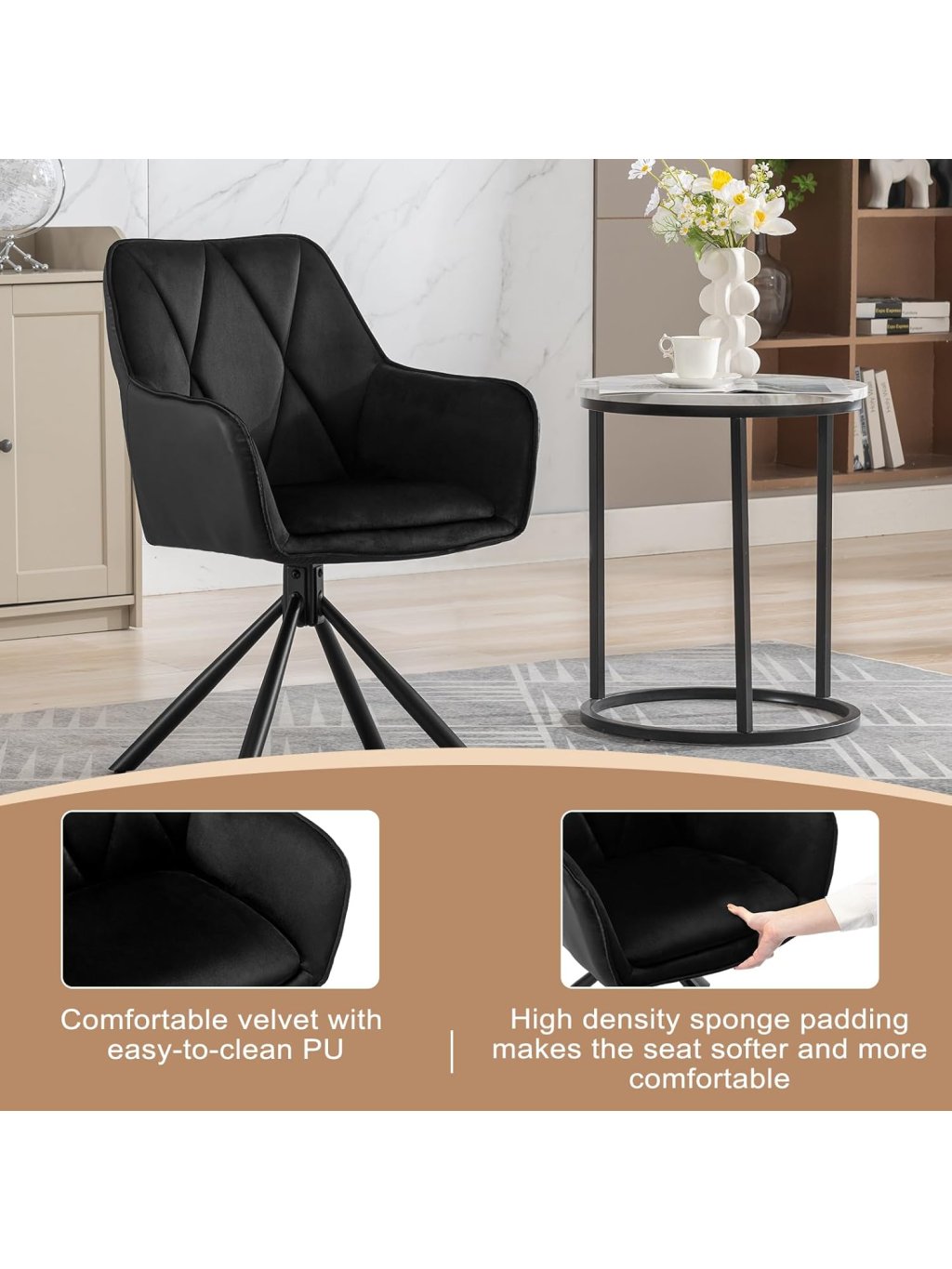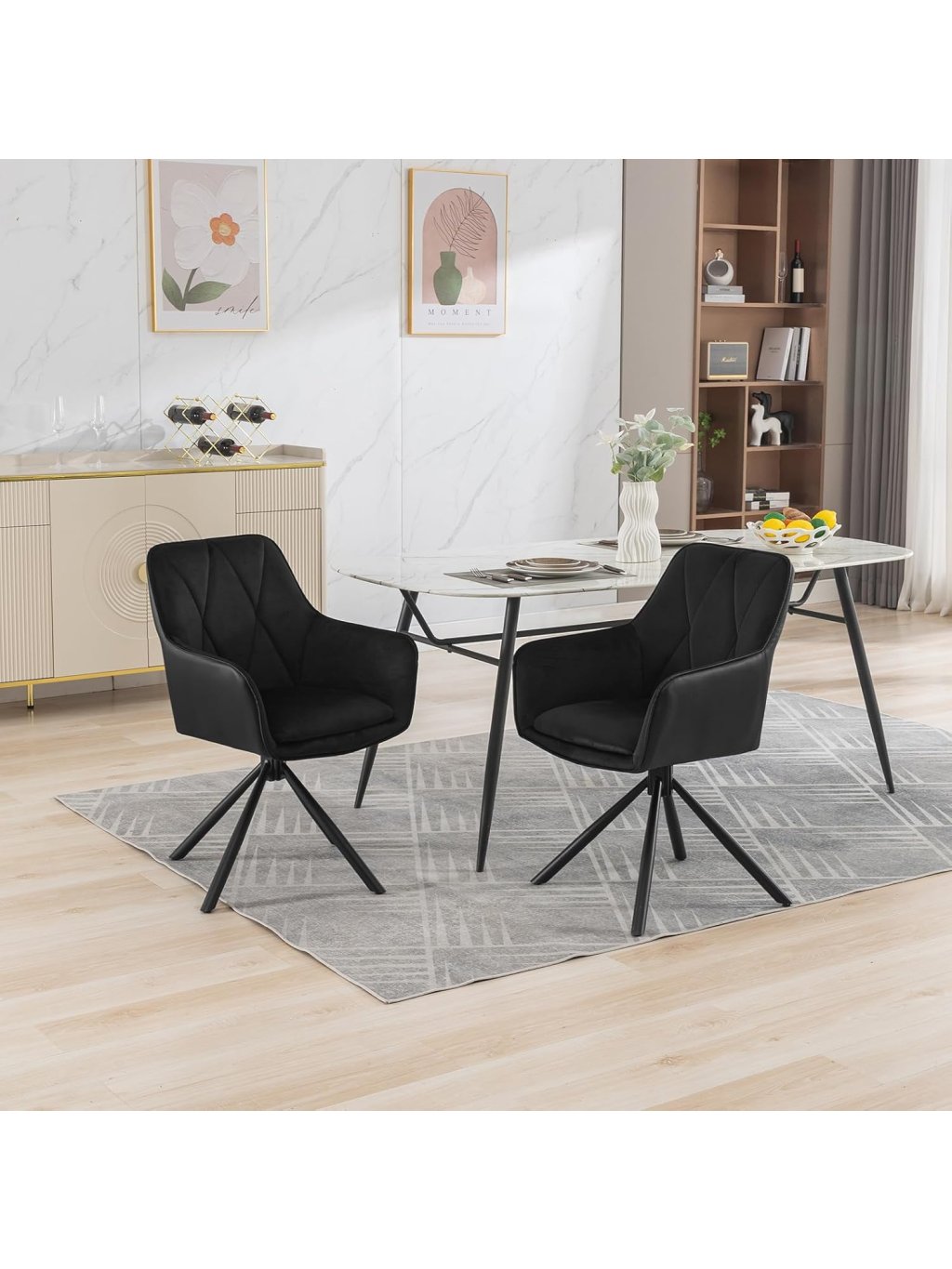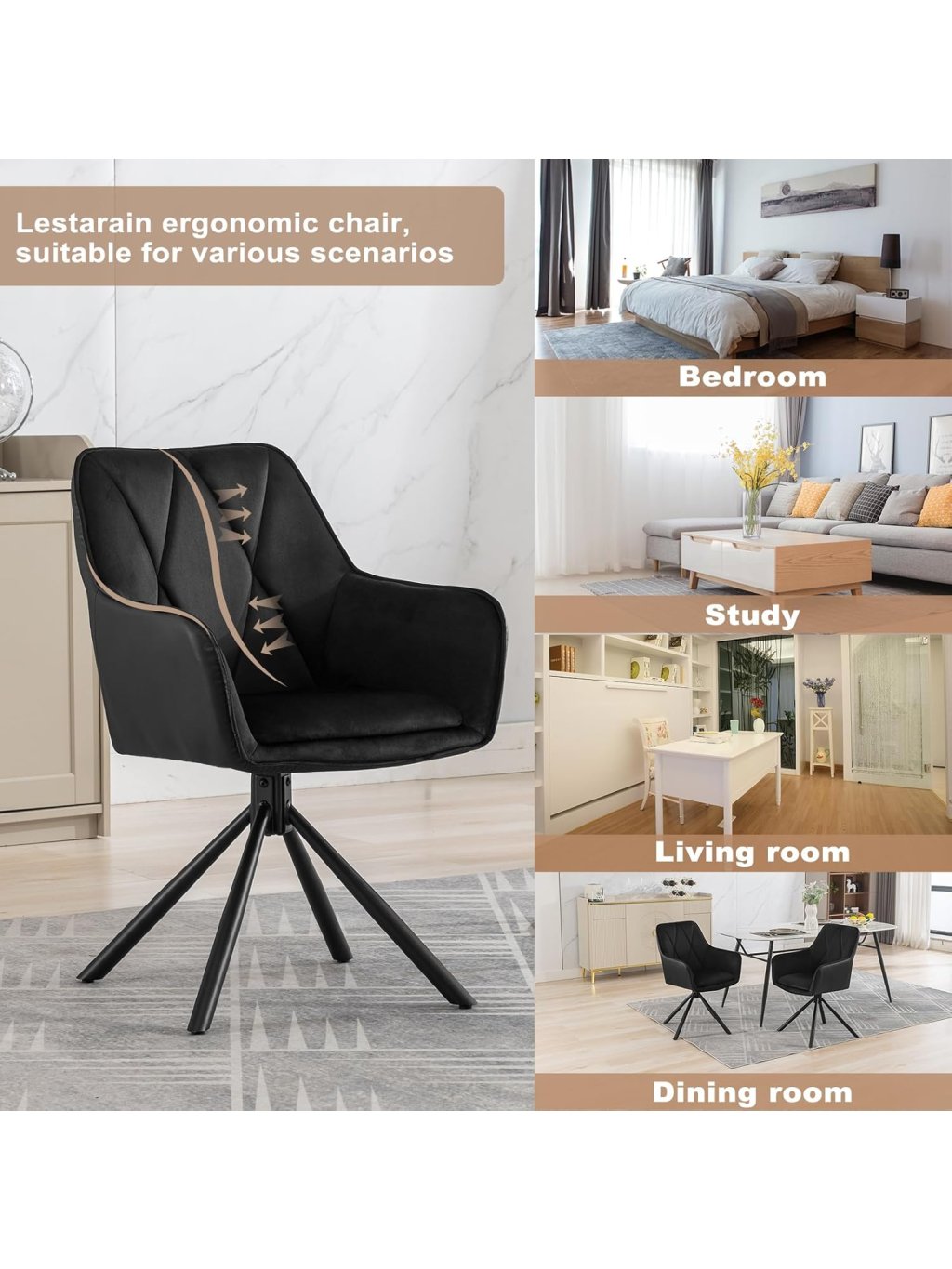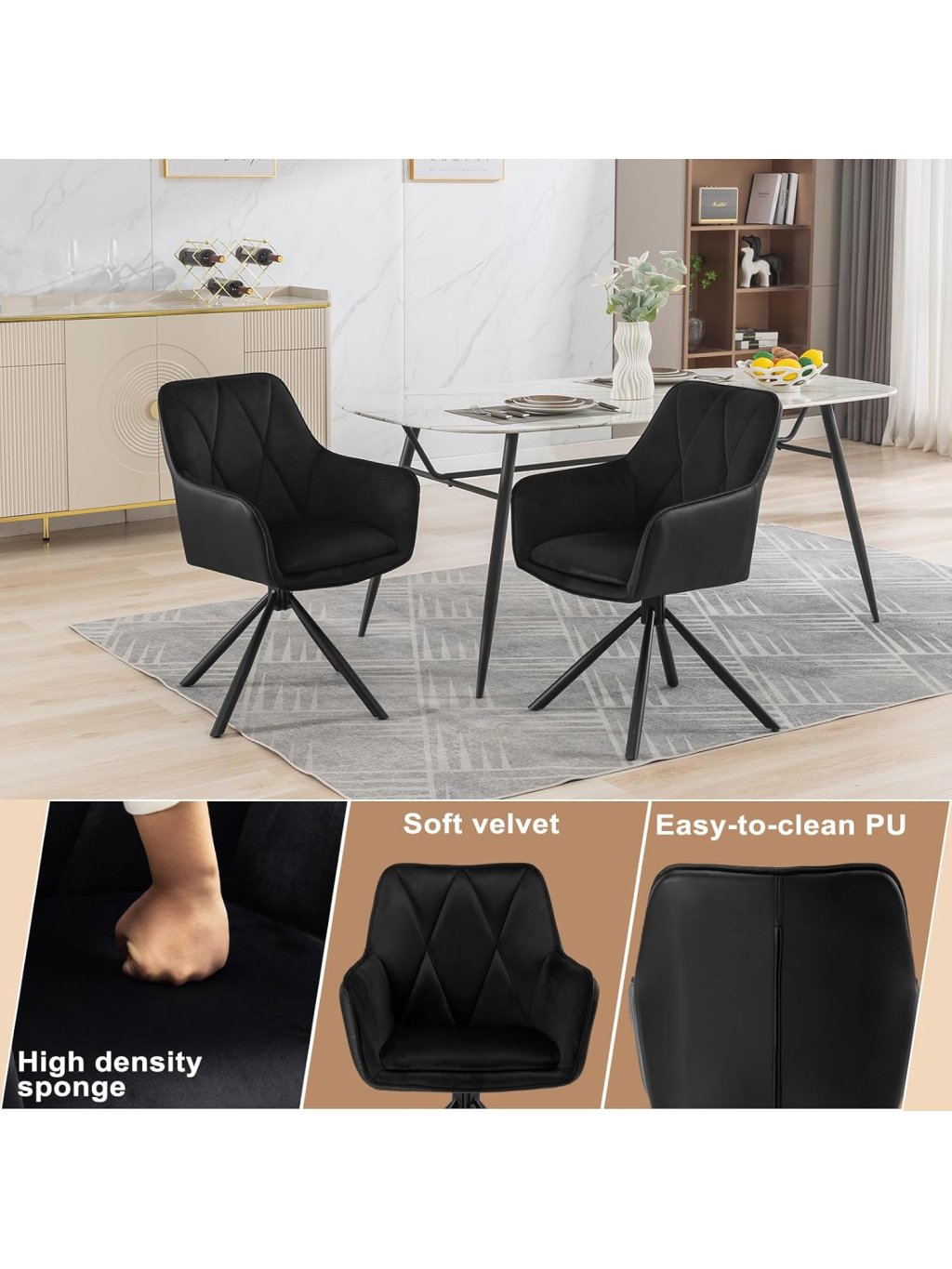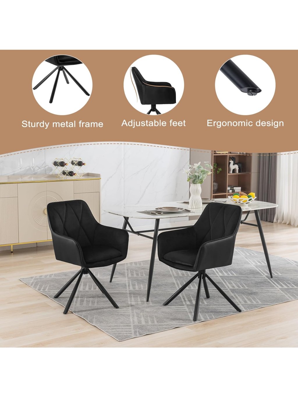 Vychutnejte si pohodlí a eleganci se sadou 2 moderních jídelních židlí od značky Lestarain, které spojují skandinávský styl, měkký velur a otočnou konstrukci. Skvělé pro jídelnu, obývací pokoj, ložnici nebo domácí kancelář.