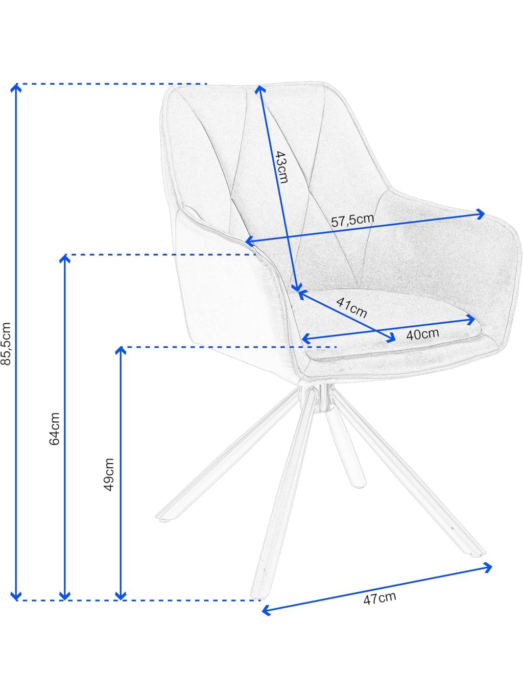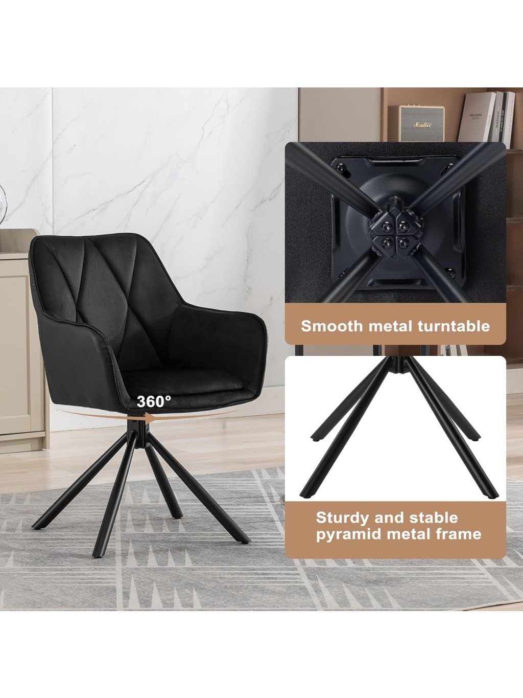360° otočné sedadlo: Kovová otočná základna umožňuje volné otáčení – ideální pro komunikaci a snadný přístup k věcem bez vstávání.