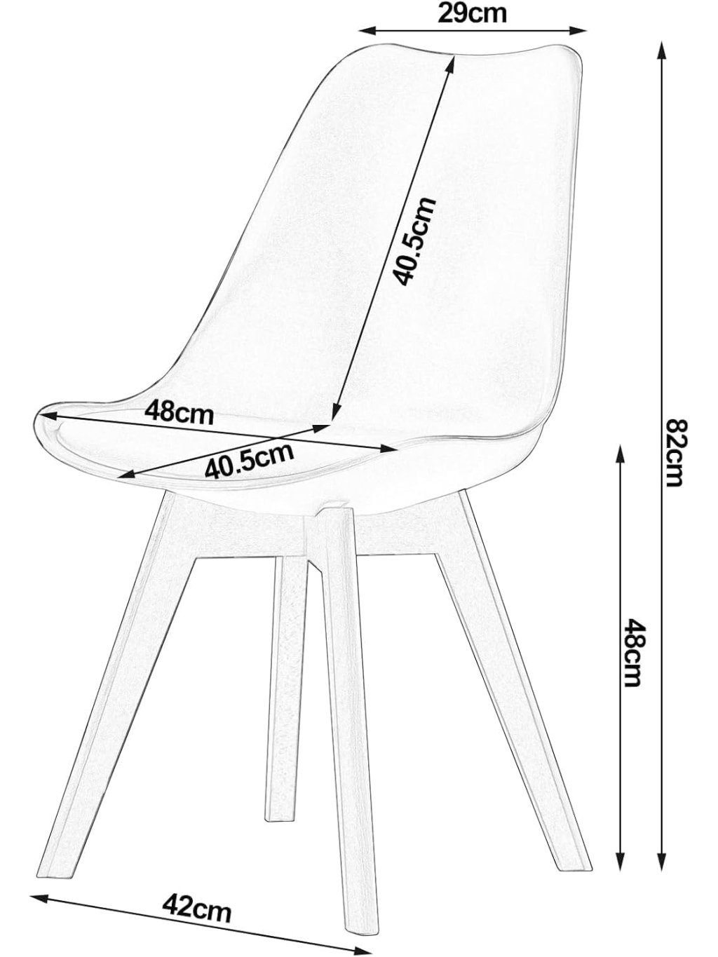 Odolná a pevná konstrukce: Židle je vyrobena z kvalitního plastového opěradla (PP) a sedáku potaženého umělou kůží. Křížově upevněné masivní dřevěné nohy zajišťují pevnost a dlouhou životnost. Nosnost až 150 kg.