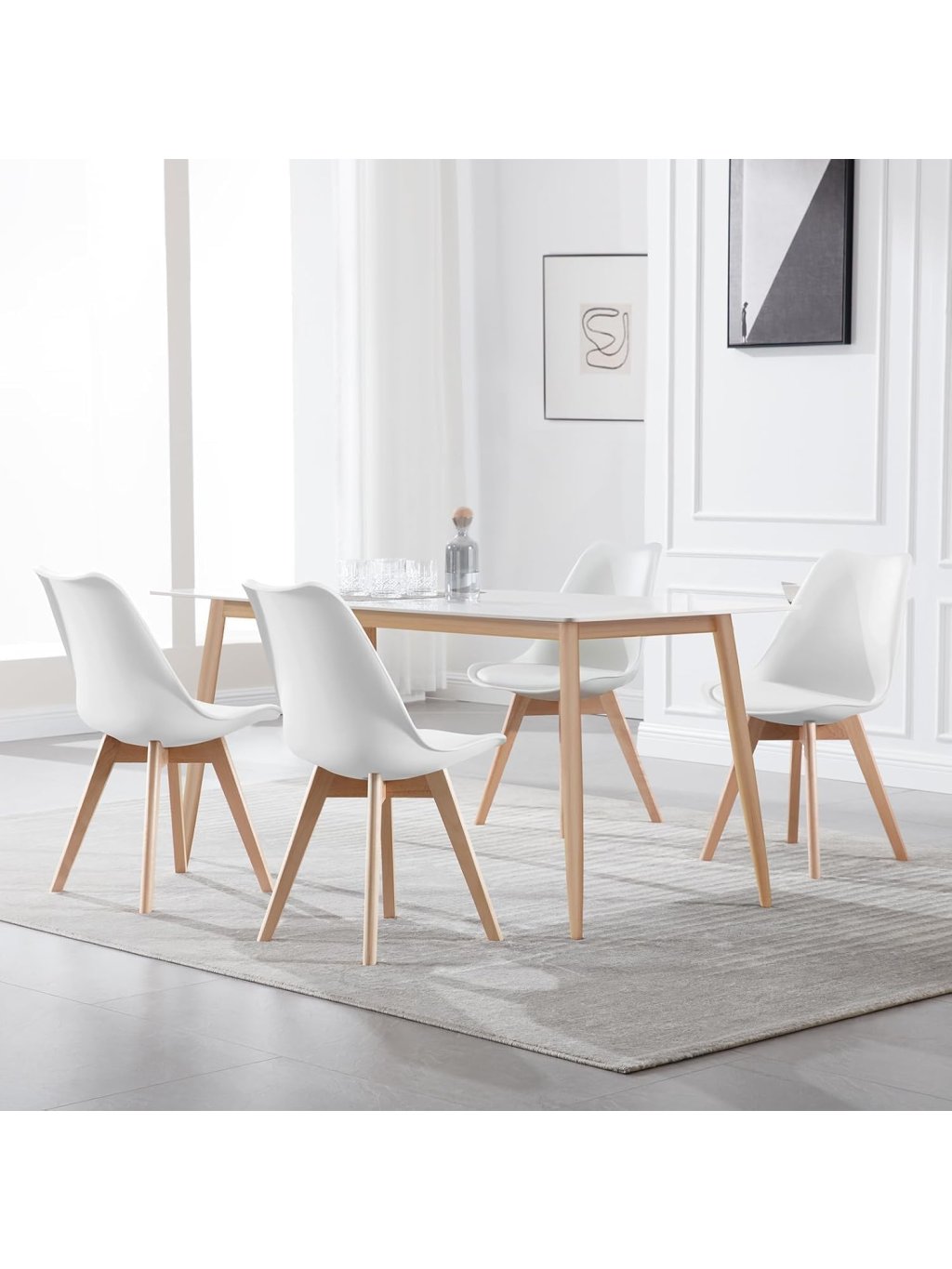 Sada 4 bílých jídelních židlí z umělé kůže a dřeva