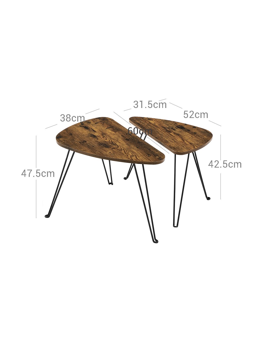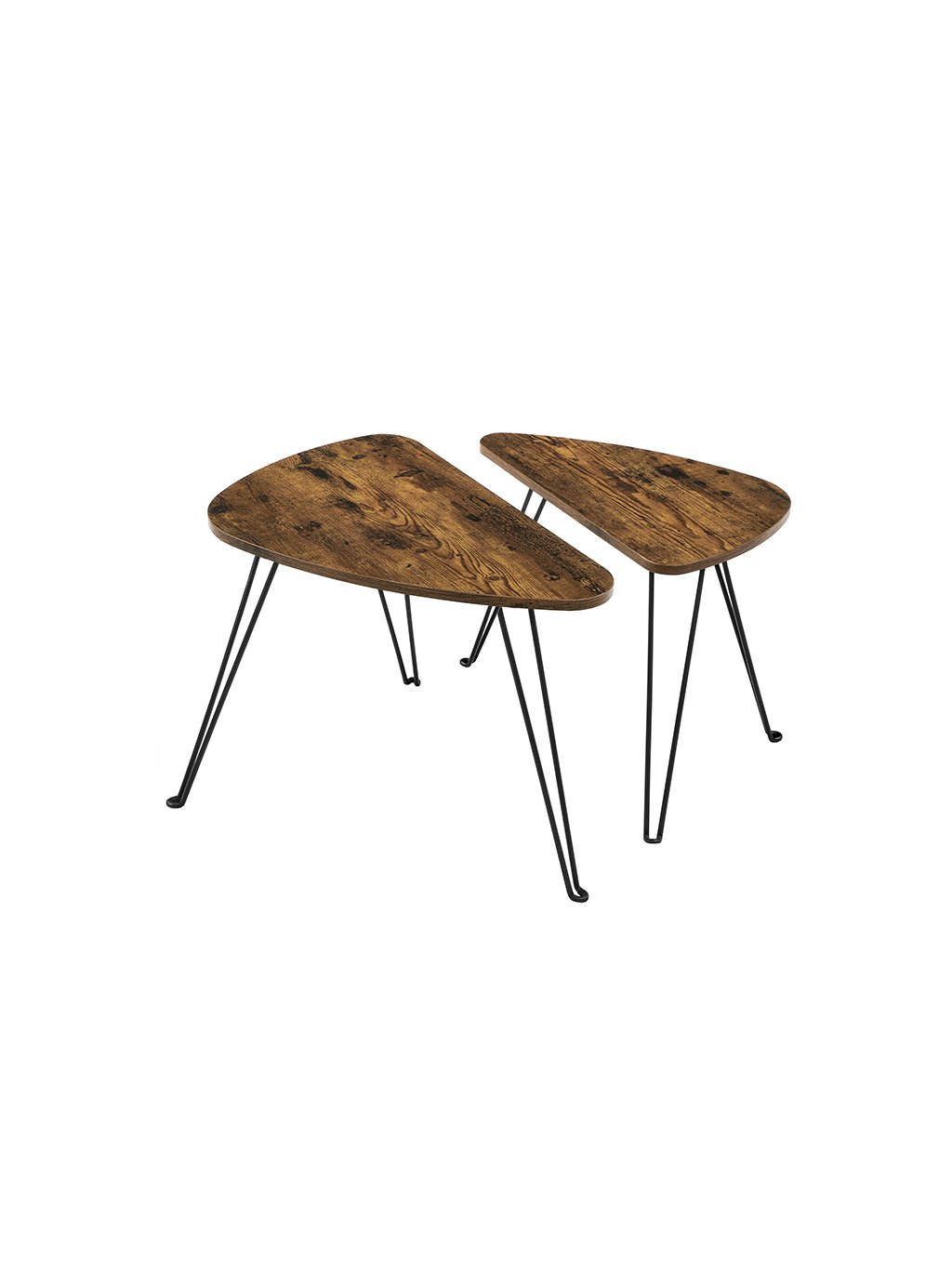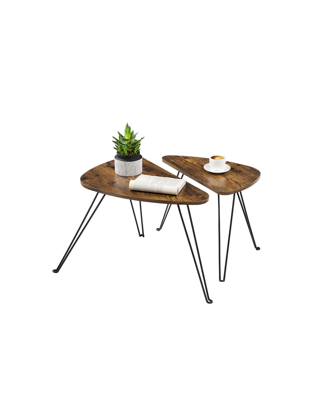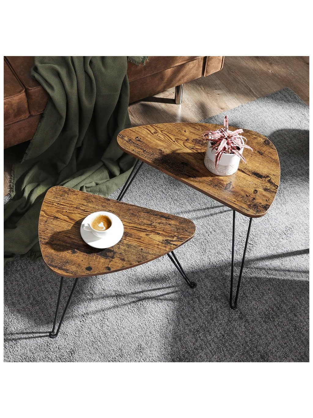 Hledáte klasické bílé nebo černé stolky? Kulaté nebo hranaté? Zkuste změnu s těmito dvěma rustikálně hnědými stolky v industriálním stylu. Jejich originální tvar dodá vašemu interiéru jedinečný charakter!