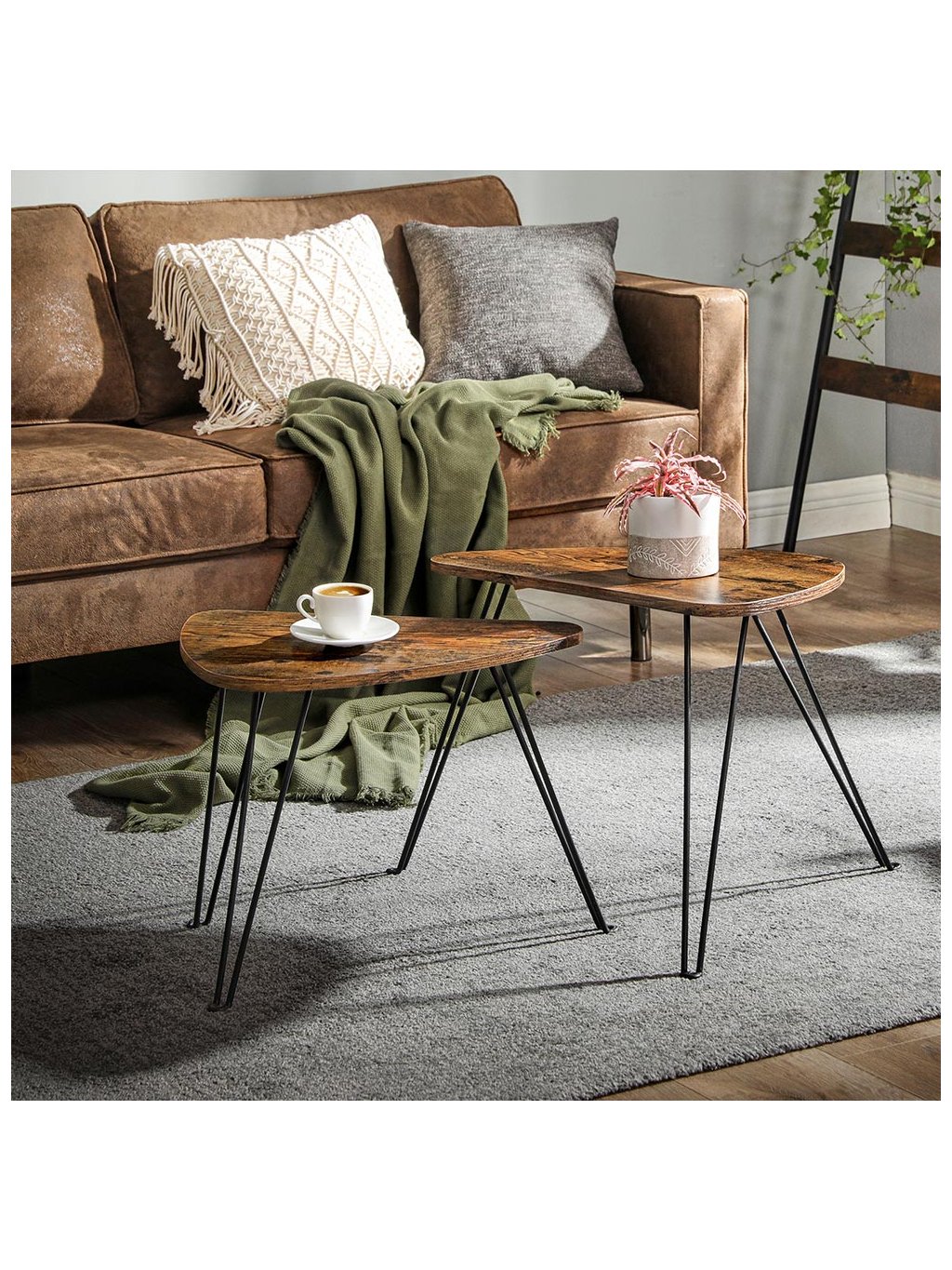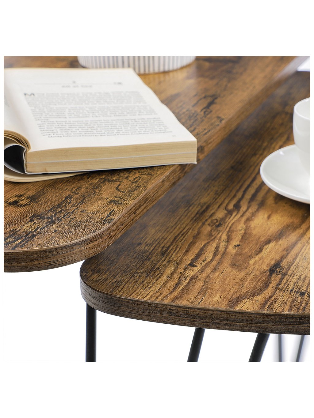 Tato nadčasová sada stolků je vyrobena z kvalitní dřevotřísky a pevné ocelové konstrukce. Odolají času i každodennímu používání – a zůstanou stylové po mnoho let.