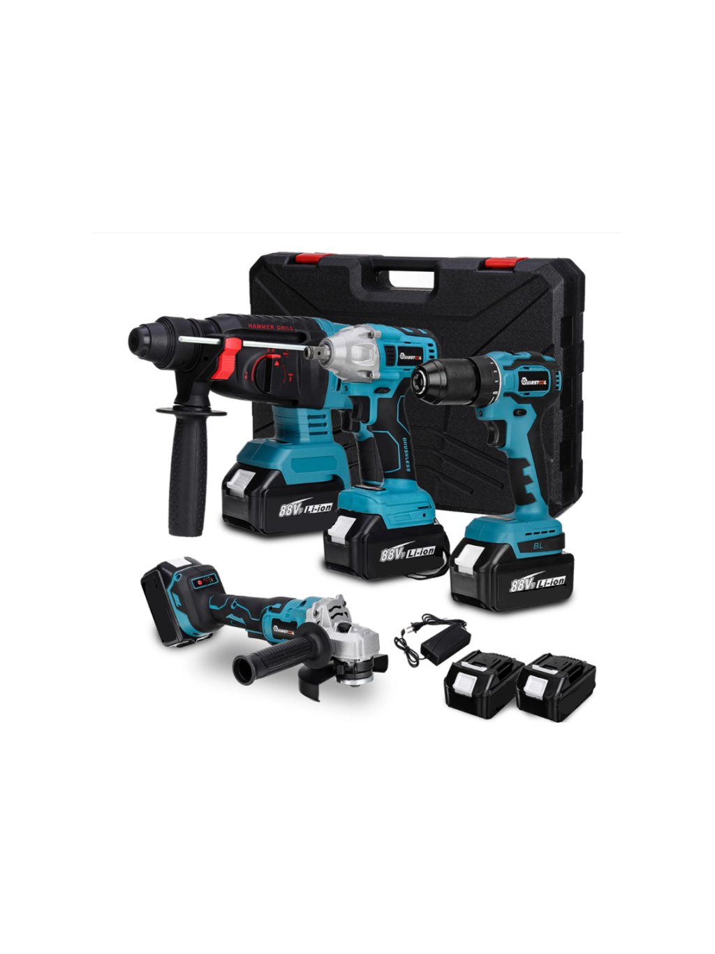 Tato kompletní sada elektrického nářadí zahrnuje rázový utahovák, úhlovou brusku, elektrické kladivo a vrtačku, což vám umožní zvládnout širokou škálu úkolů – od řezání a broušení až po vrtání a šroubování. Bezkartáčové motory zajišťují delší životnost, vyšší výkon a efektivní provoz.