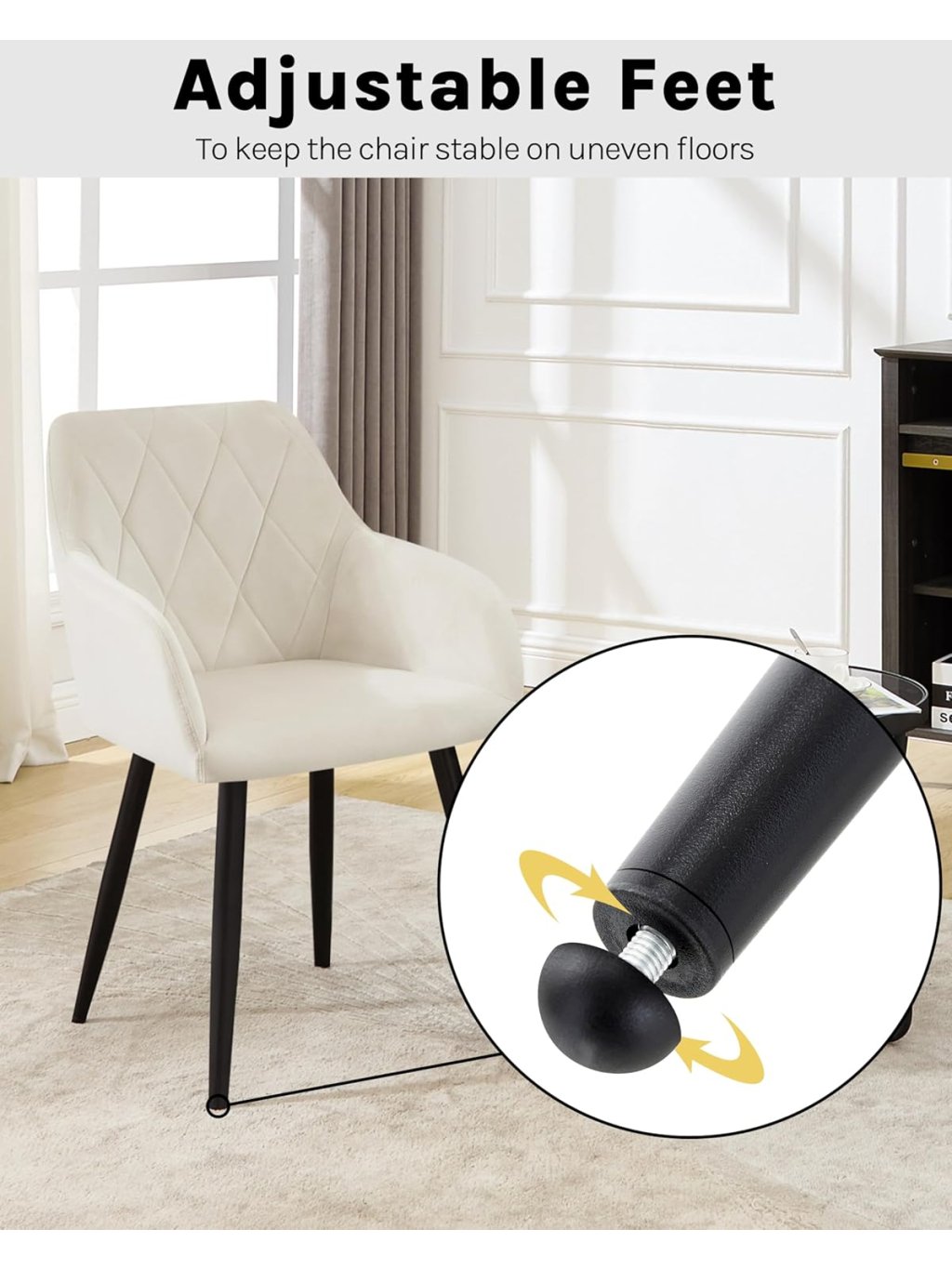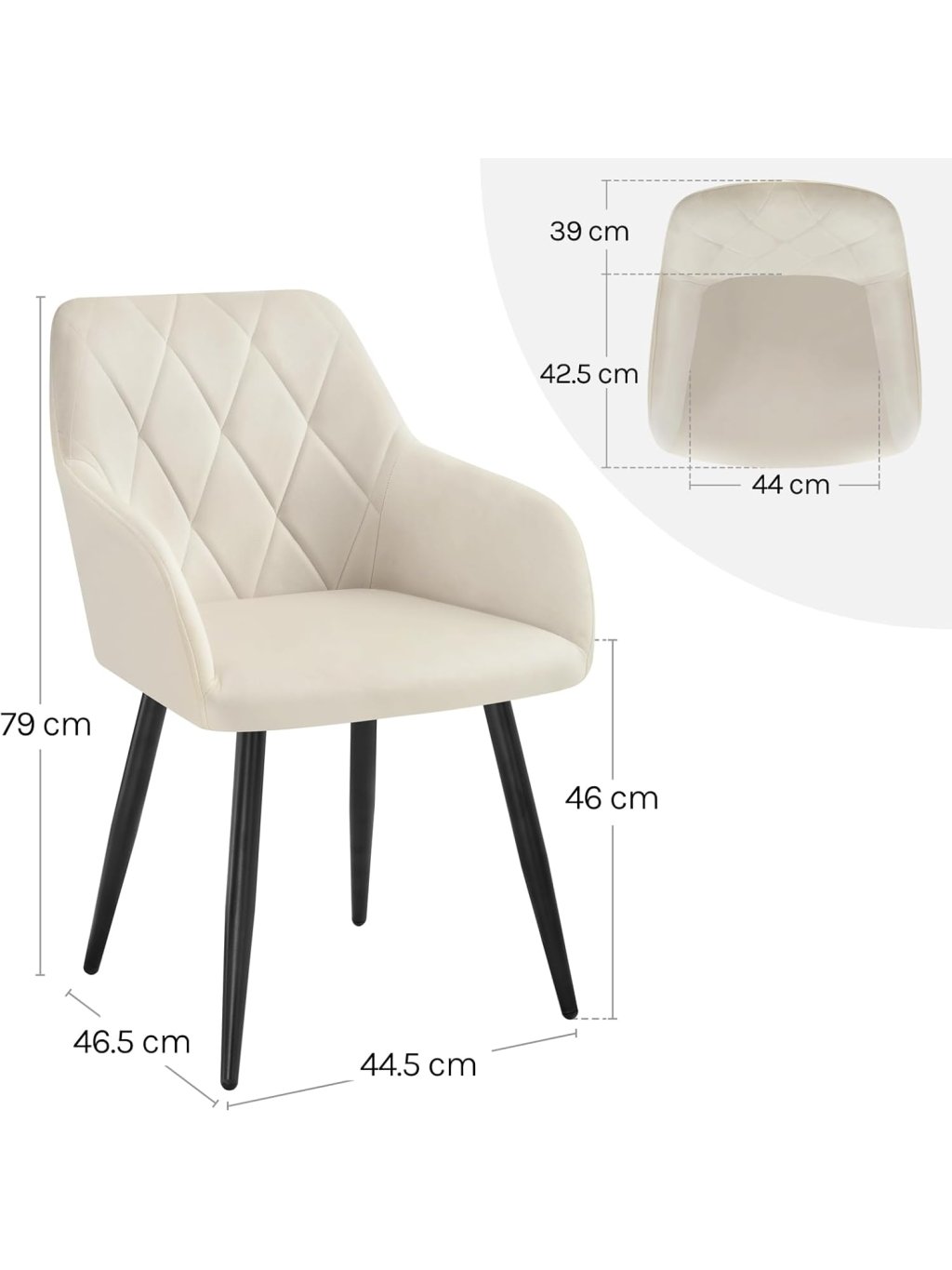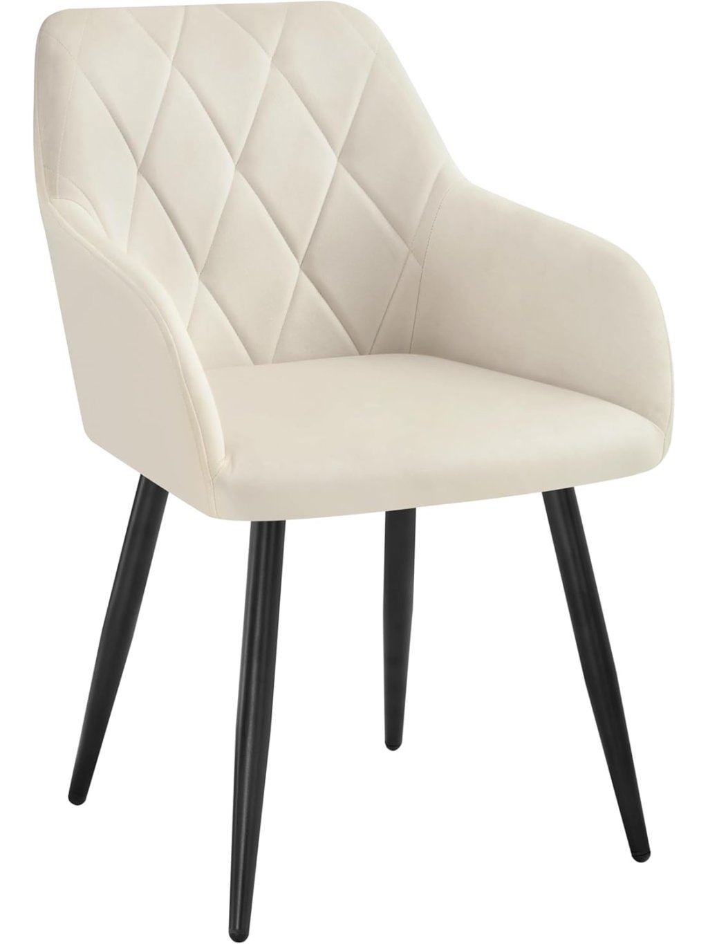Designová jídelní židle WOLTU BH352cm-1 se sametovým potahem, opěrkami a kovovými nohami – bílá
