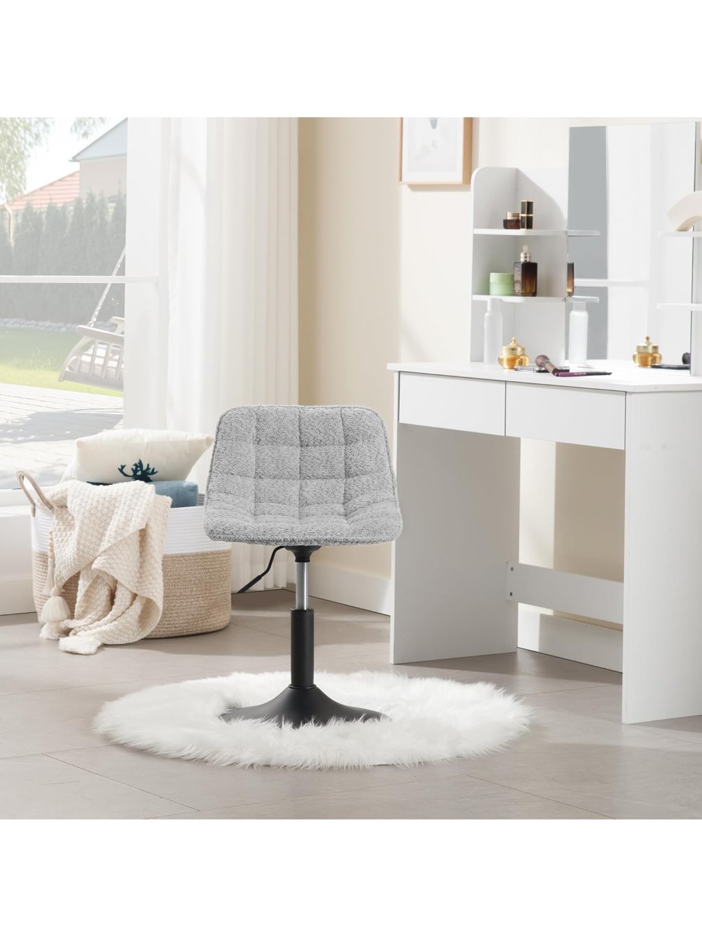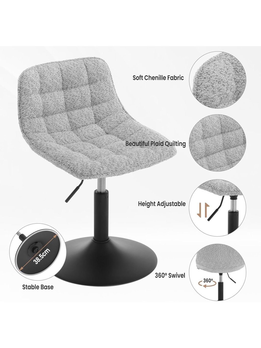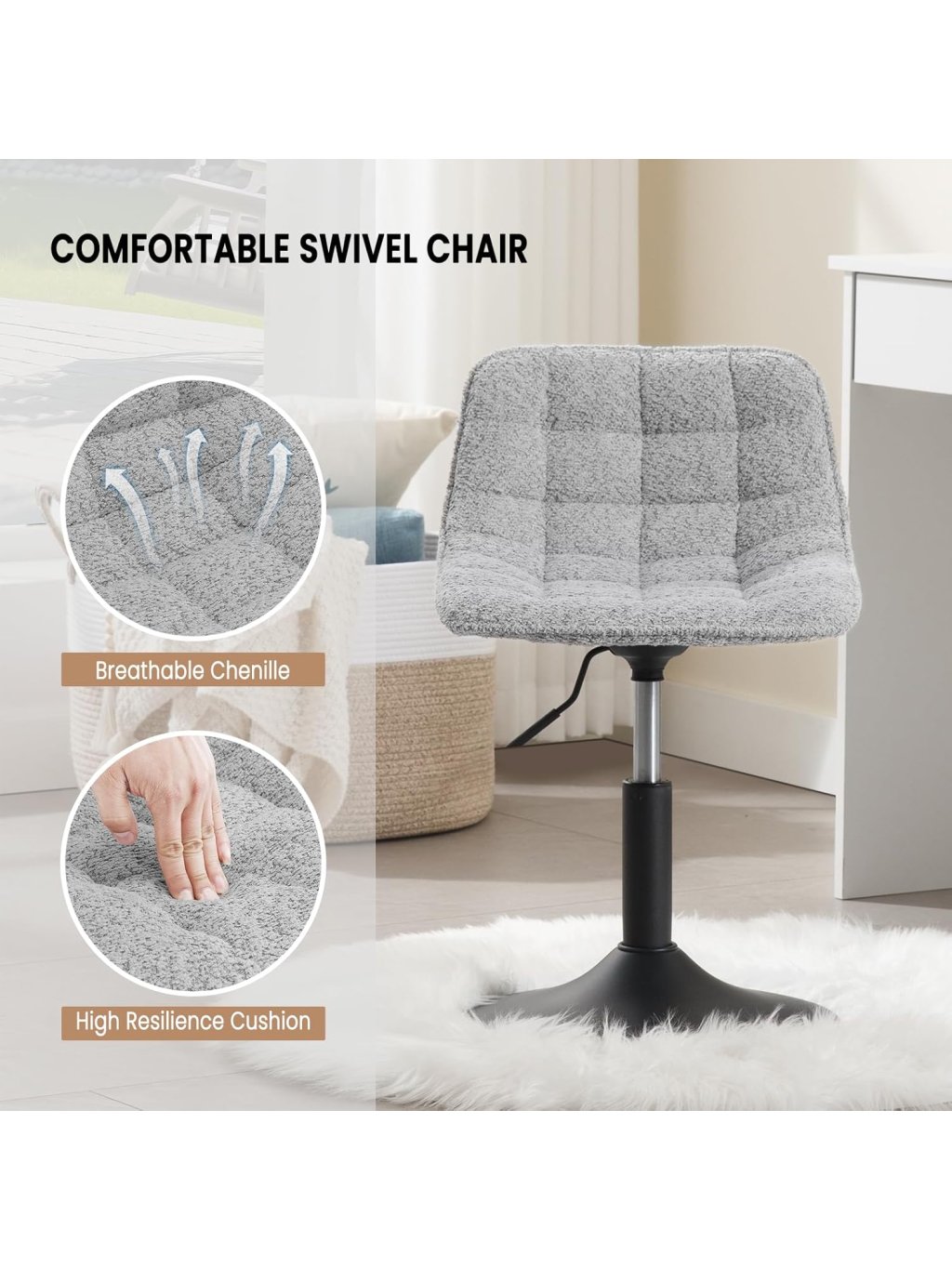 Otočná židle k toaletnímu stolku z čenilu, šedá – výškově nastavitelná, s opěrkou zad