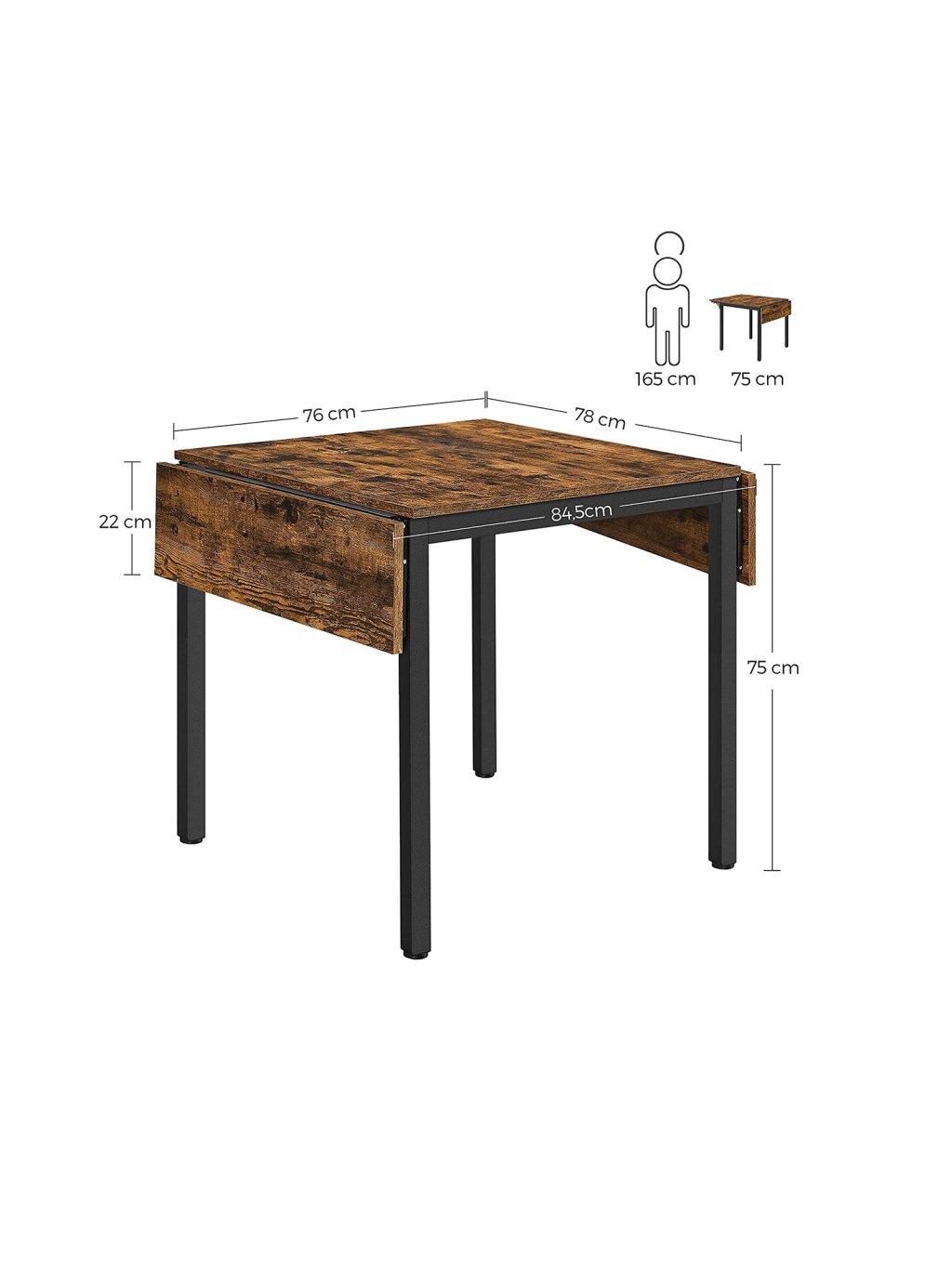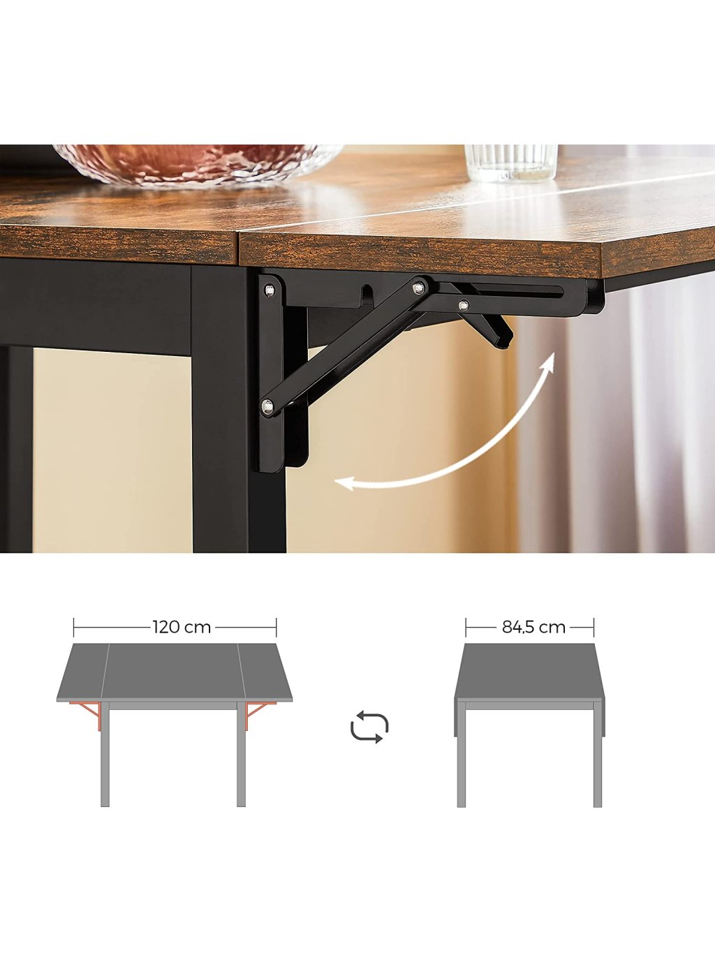 Skládací jídelní stůl – rustikální hnědá/černá, rozkládací 84,5–120 × 78 cm