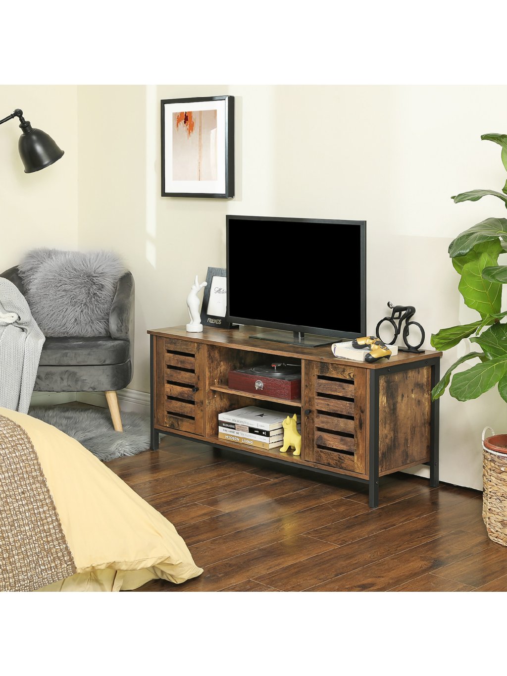 TV stolek s lamelovými dvířky, 110 × 40 × 50 cm, industriální styl