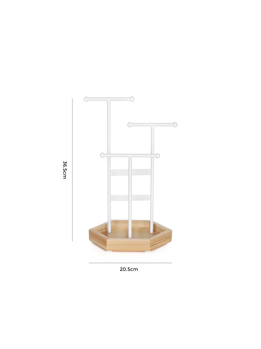 Stojan na šperky s dřevěnou základnou – bílý, 20,5 × 18 × 36 cm
