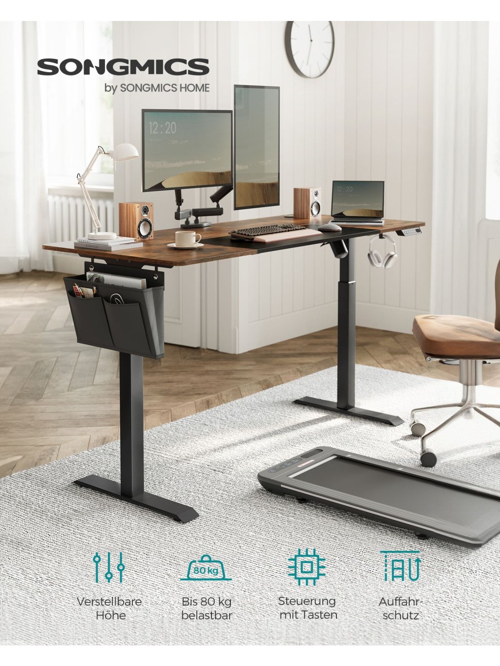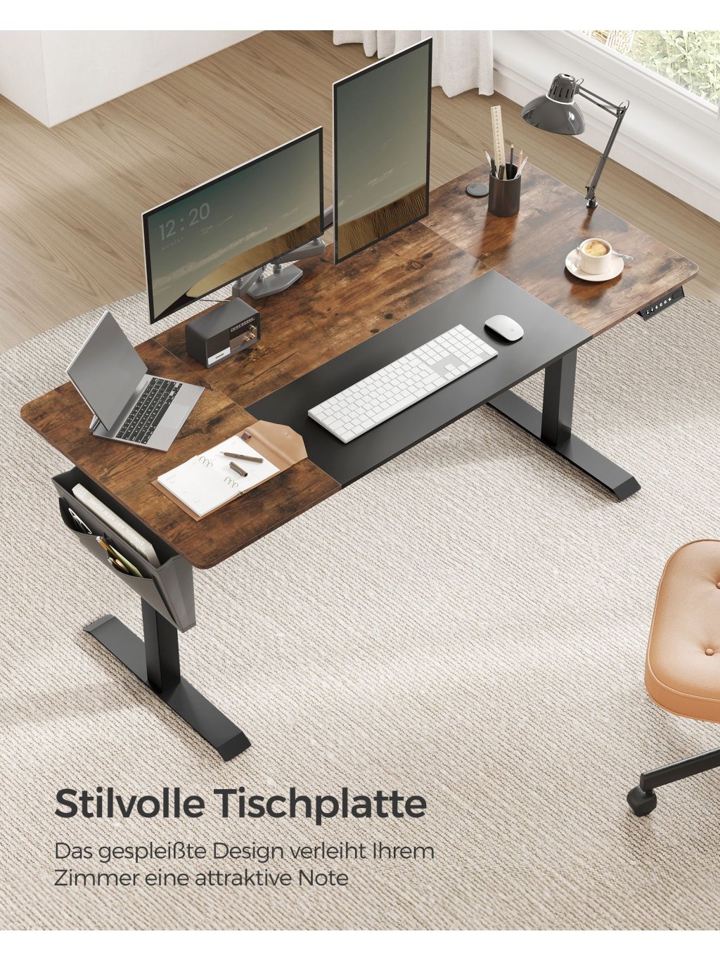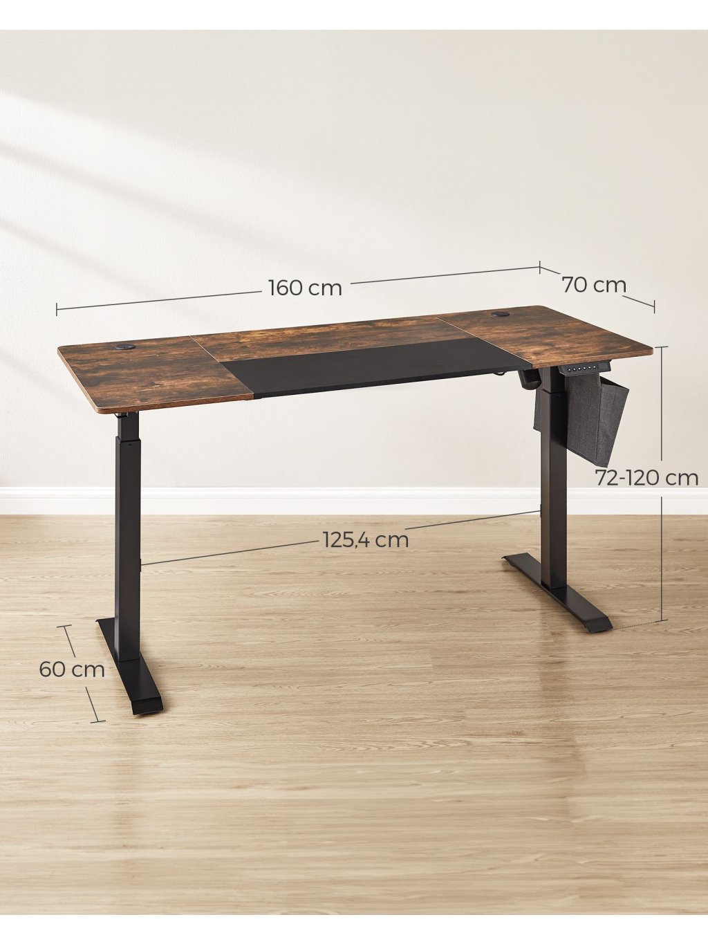 Elektrický psací stůl, nastavitelný výškově, vintage hnědý/černý, 70 x 160 cm
