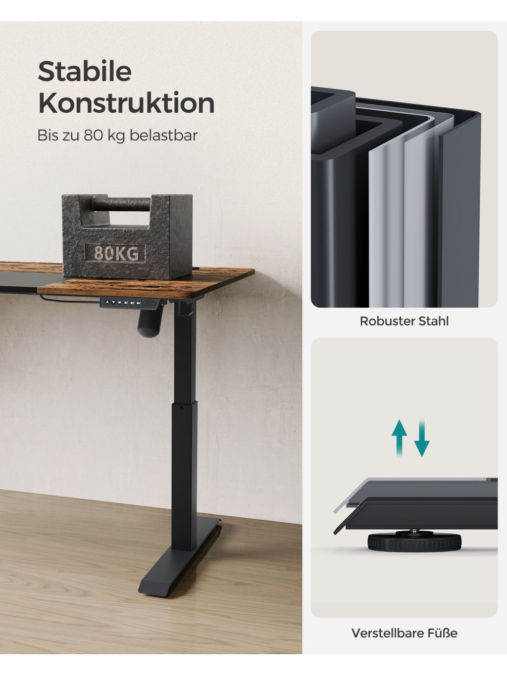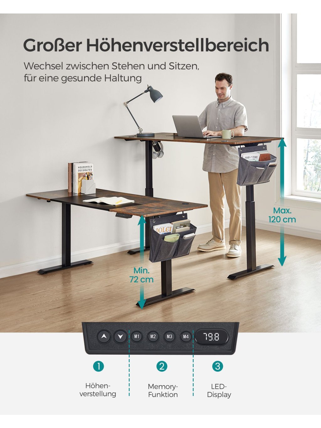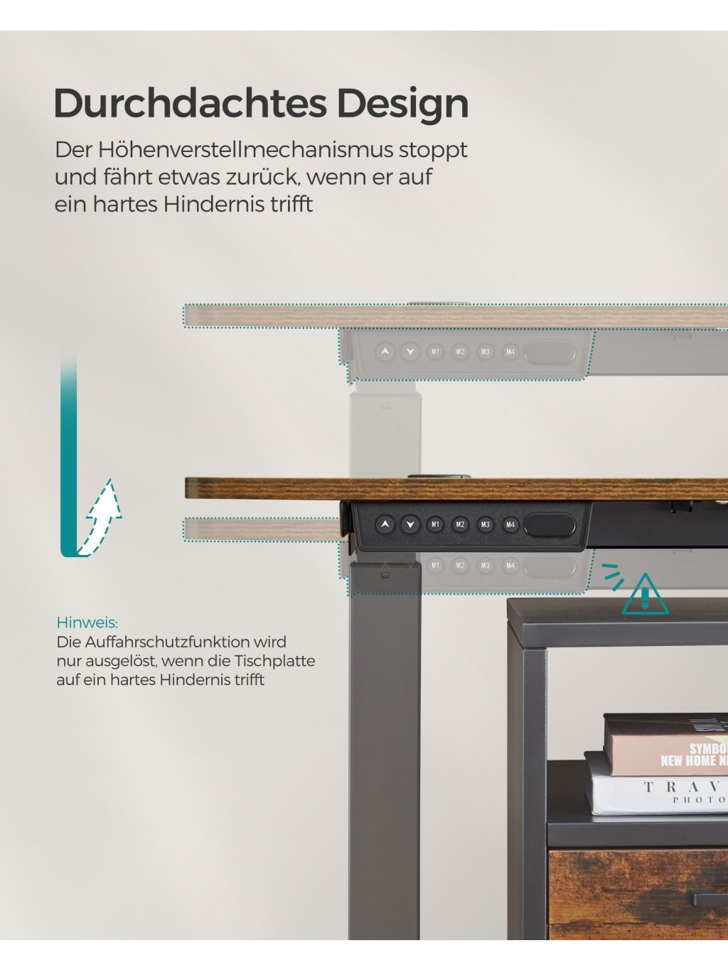 Výšku stolu můžete nastavit mezi 72 a 120 cm a uložit si až 4 oblíbené výšky. Funkce ochrany proti nárazu zajistí bezpečné zastavení při překážce.