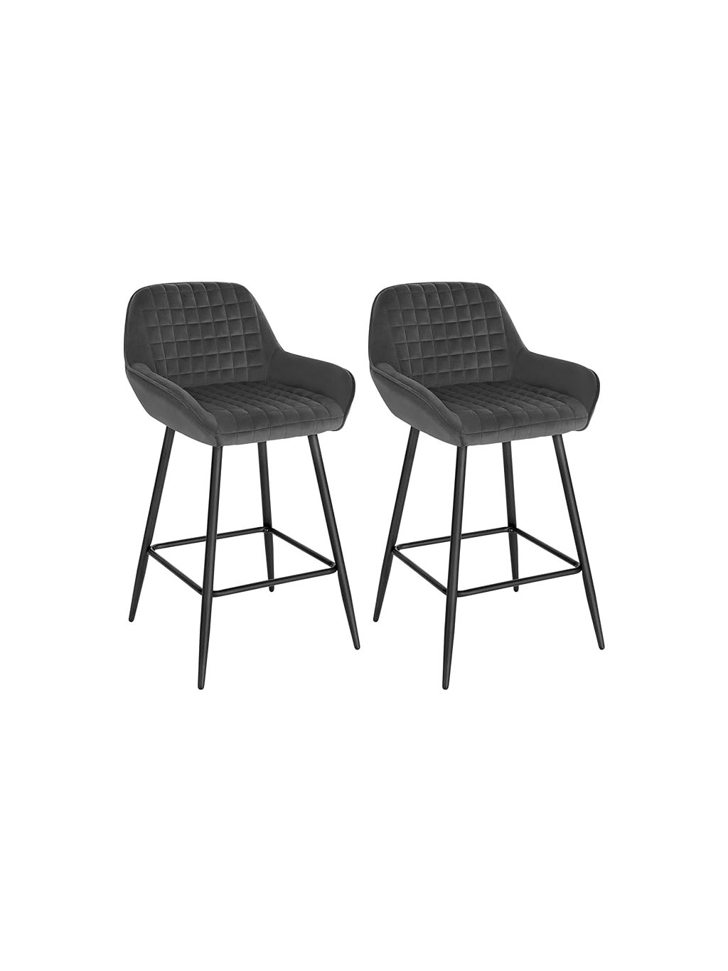 WOLTU 2× barová židle BH372, sametová, s opěrkami, tmavě šedá