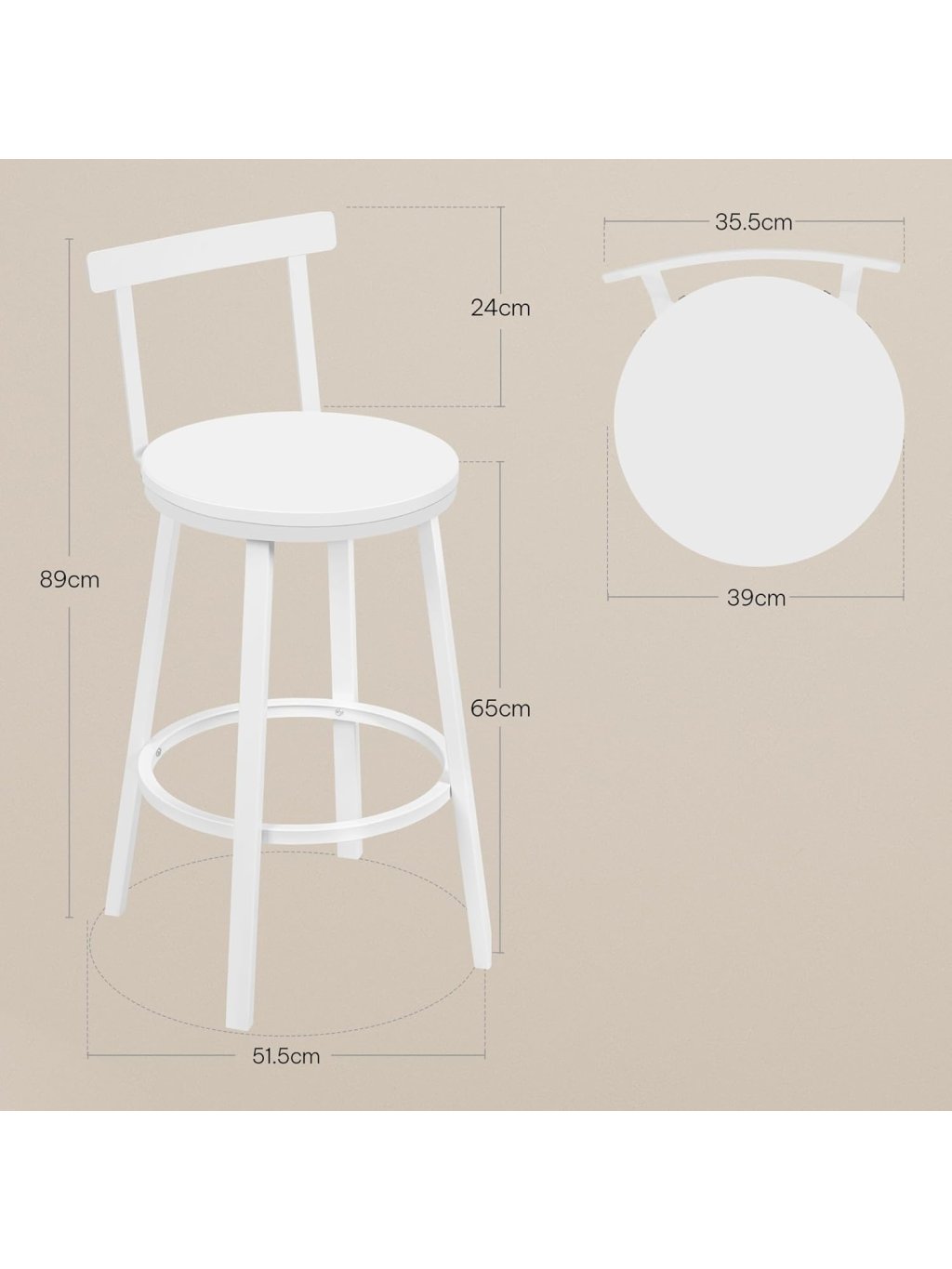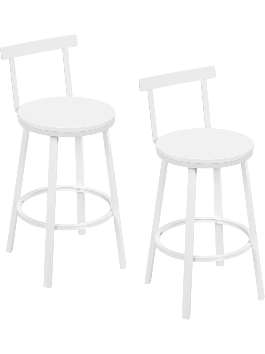 WOLTU 2× barová židle BH430, MDF, bílá, kovový rám, opěrka