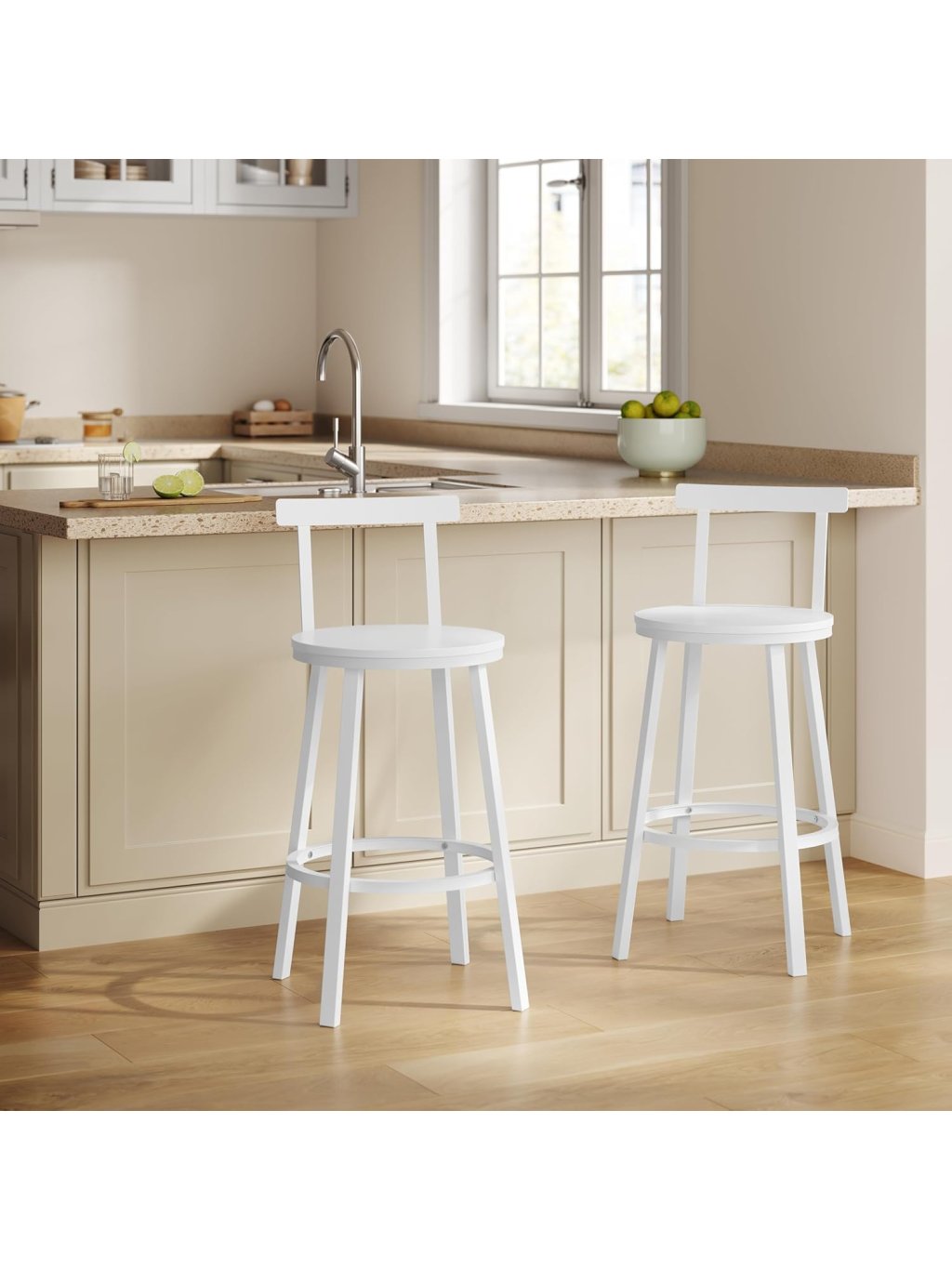 WOLTU 2× barová židle BH430ws – kovový rám, MDF, opěrka, bílá