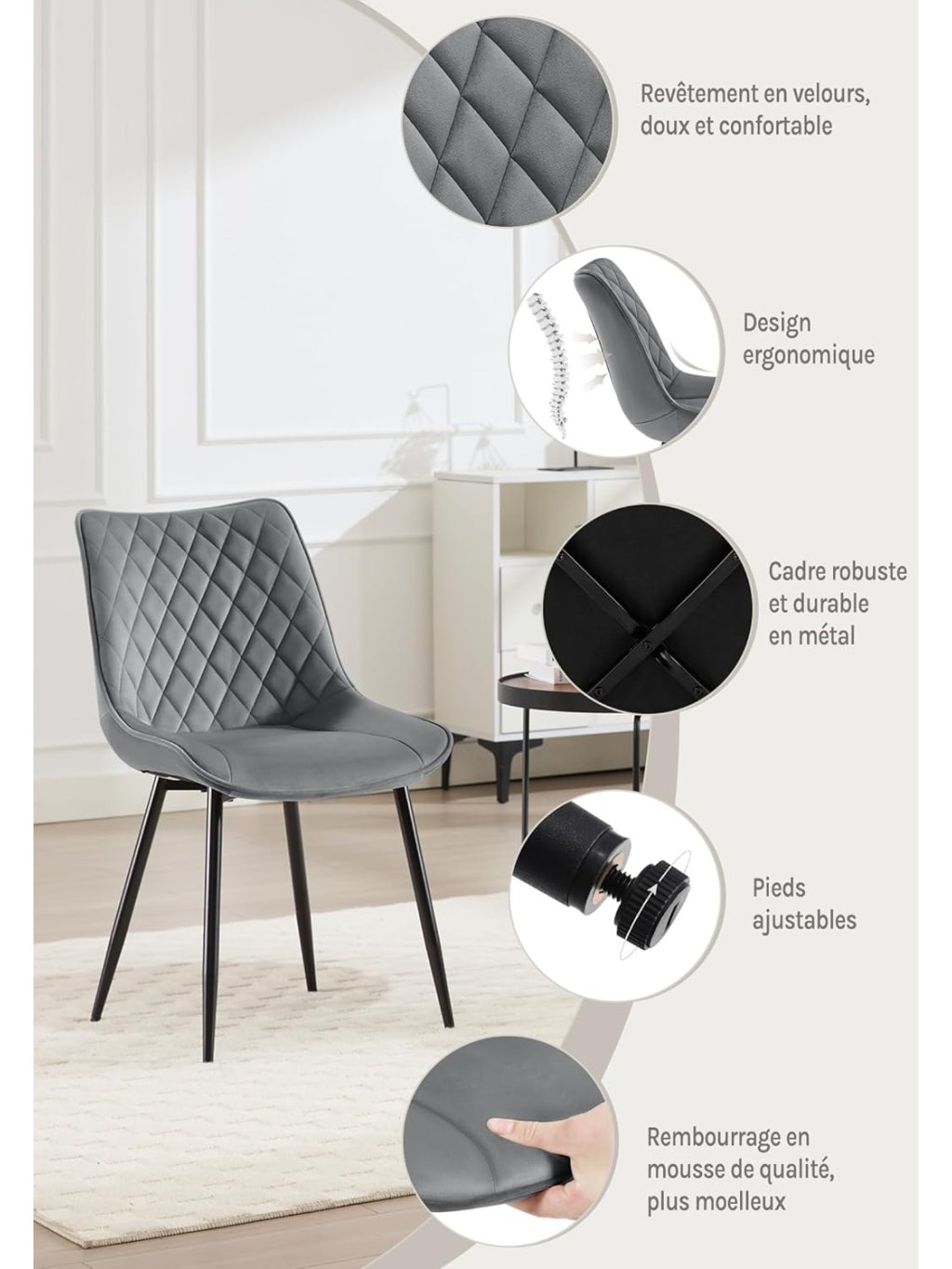 Elegantní a pohodlné jídelní židle WOLTU BH209 kombinují stylový sametový vzhled, ergonomický tvar a stabilní kovovou konstrukci. Jsou ideální nejen do jídelny či kuchyně, ale také jako pracovní židle, toaletní židle nebo relaxační křesílko.