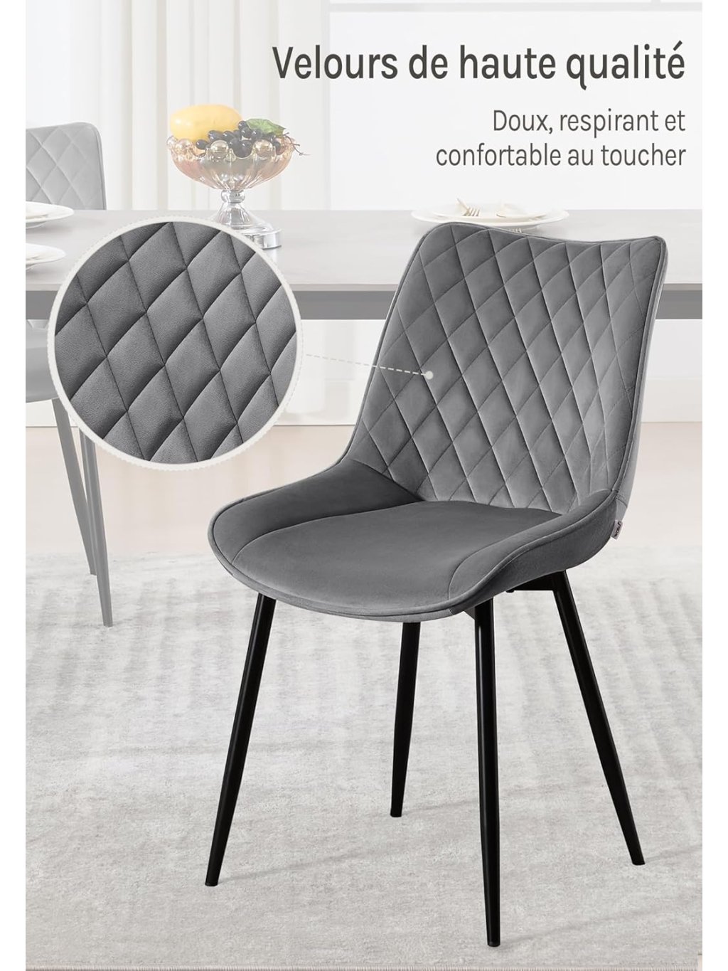 WOLTU 2× jídelní židle BH209, samet, kov, tmavě šedá