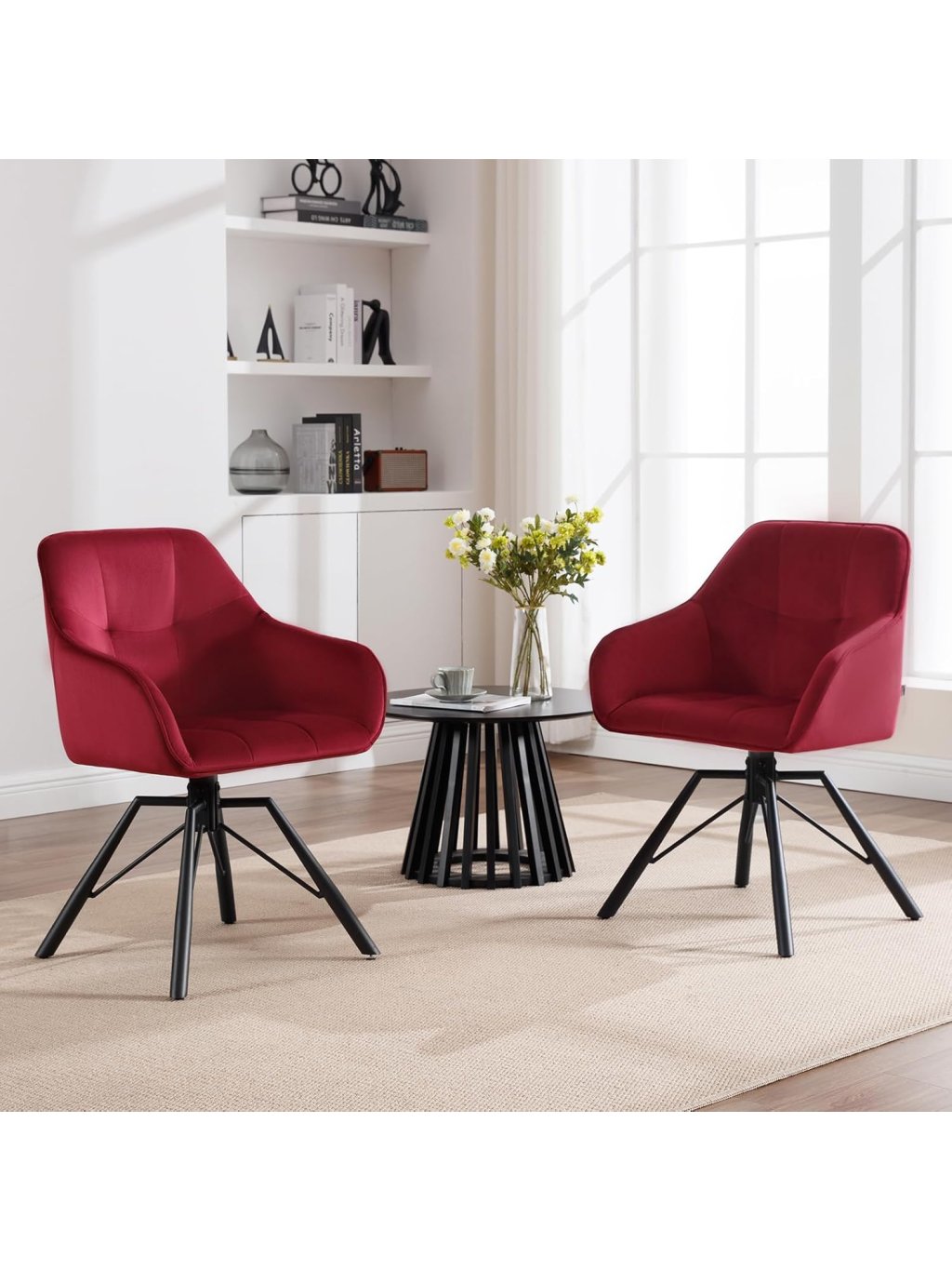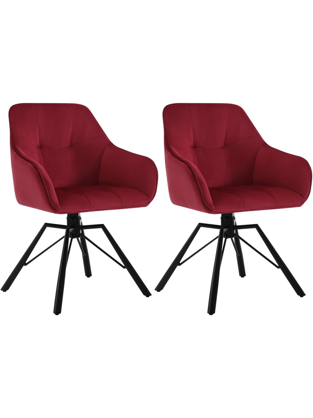 WOLTU 2× jídelní otočné židle BH365bd, sametové, vínové, s opěrkami a kovovou konstrukcí