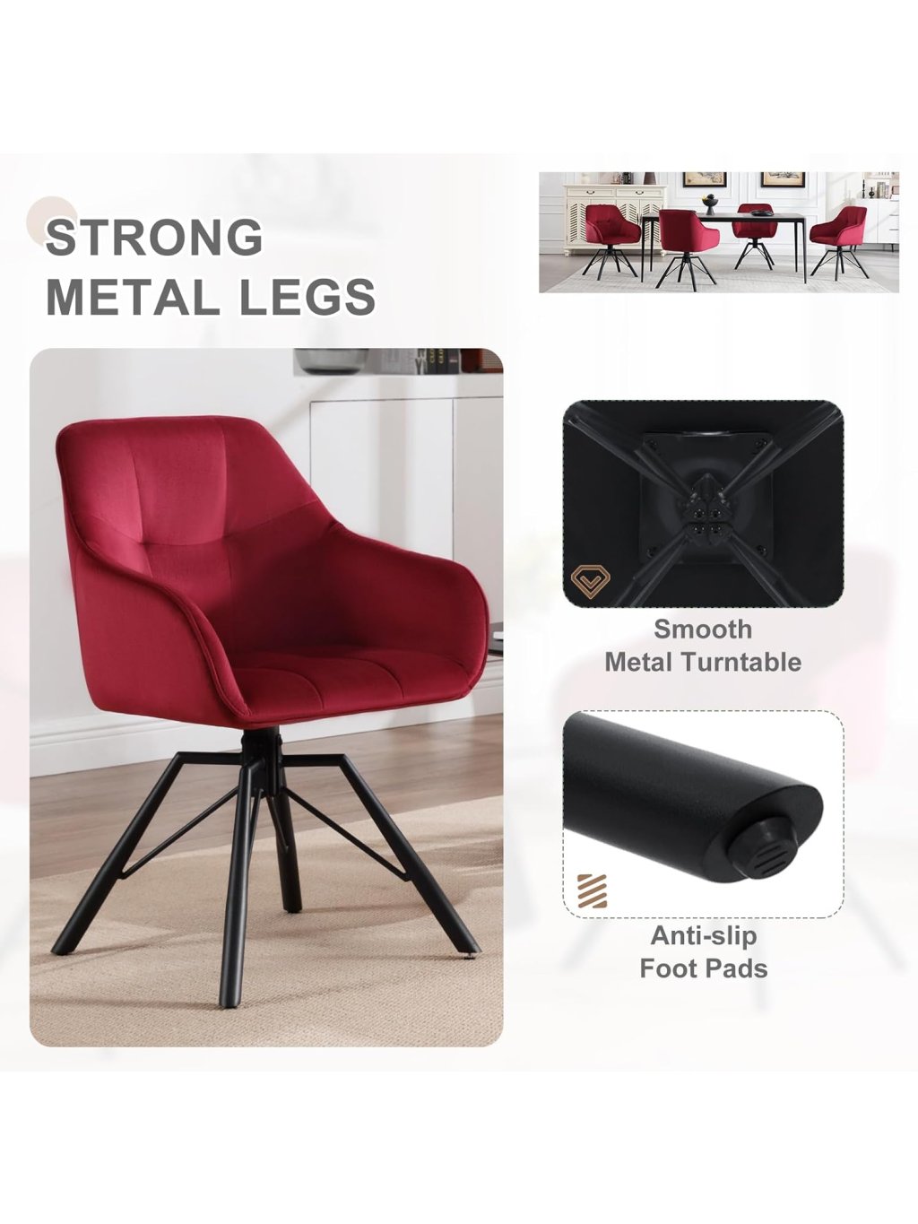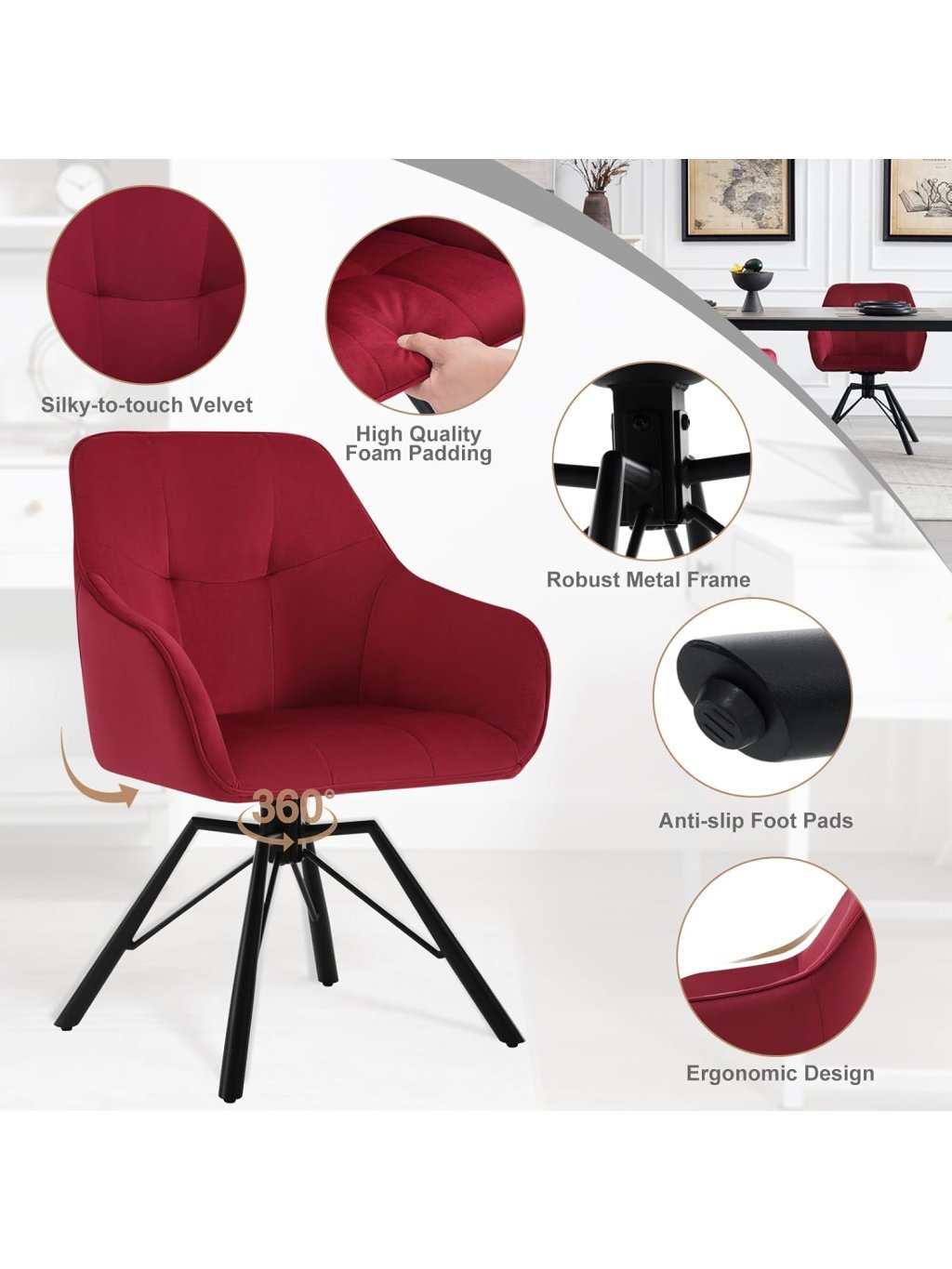 Elegantní a pohodlné jídelní židle WOLTU BH365 spojují styl, ergonomii a funkčnost. Díky měkkému sametovému čalounění, vysokým područkám a otočné konstrukci se stanou dokonalým doplňkem každé jídelny, kuchyně nebo obývacího pokoje.