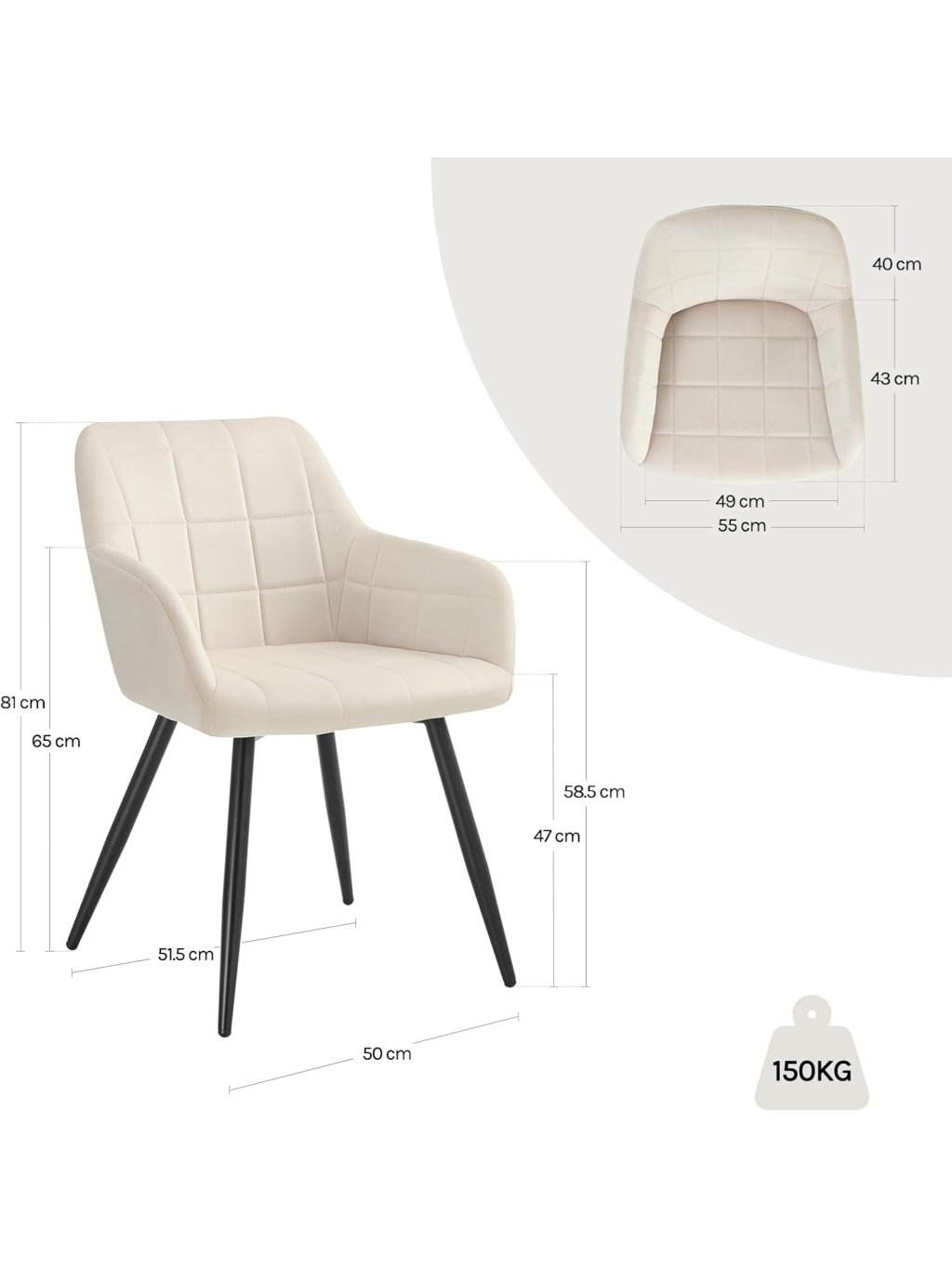 Všestranné použití: Sedák má rozměry 49 × 43 cm, výška opěrky je 40 cm. Područky mají výšku nastavitelnou mezi 58,5 a 65 cm, což umožňuje židli pohodlně zasunout pod většinu stolů. Skvěle se hodí do jídelny, obýváku, pracovny, kosmetického koutku i jako kancelářská židle. Jednoduchý styl snadno zapadne do každého interiéru.